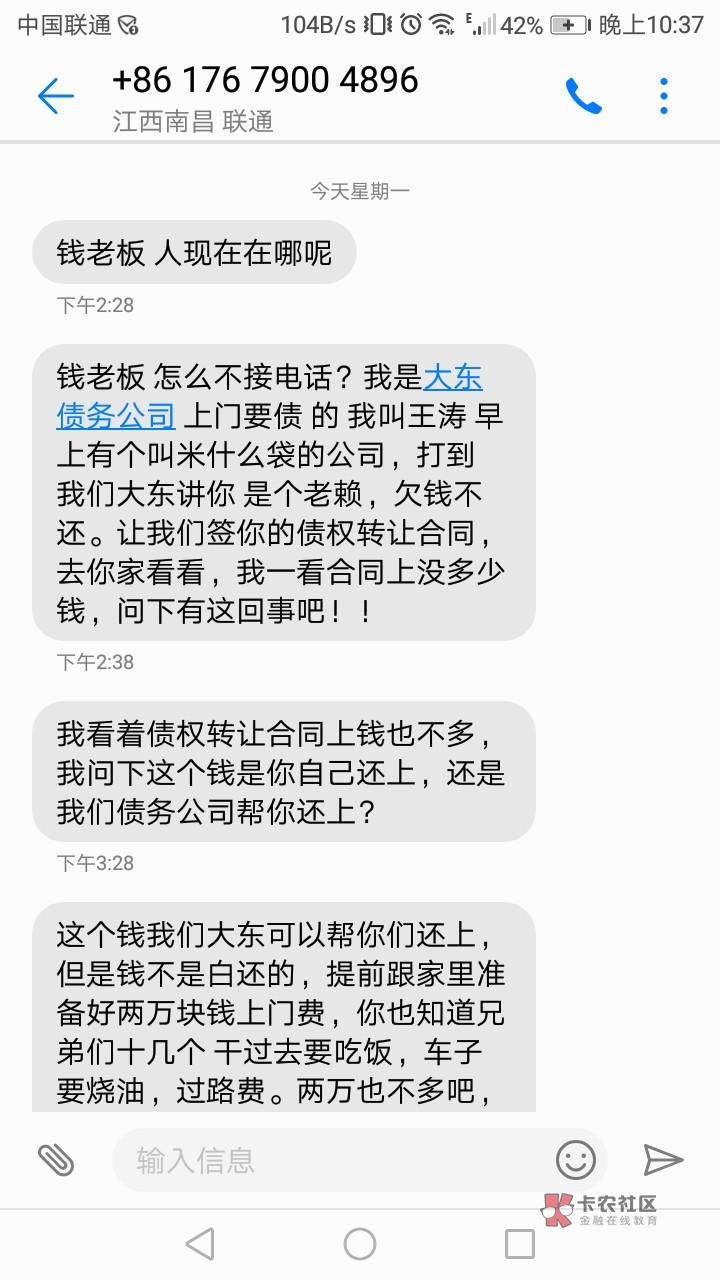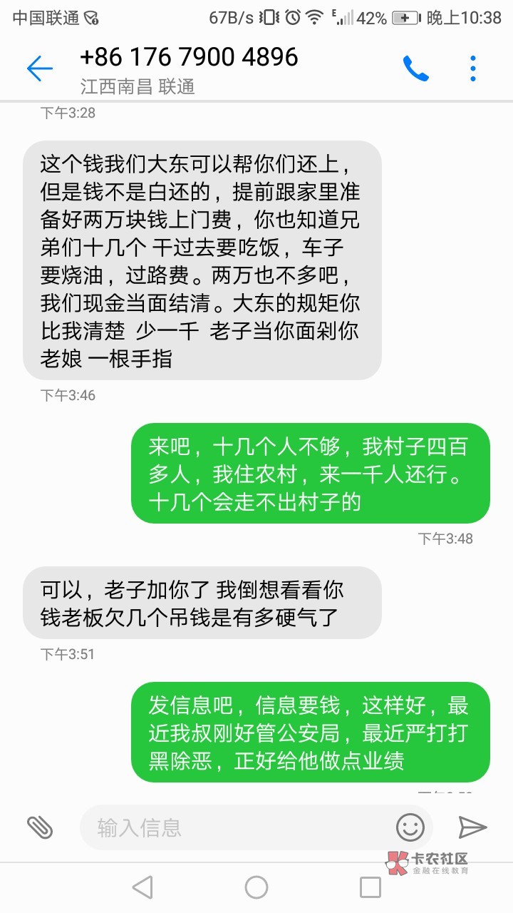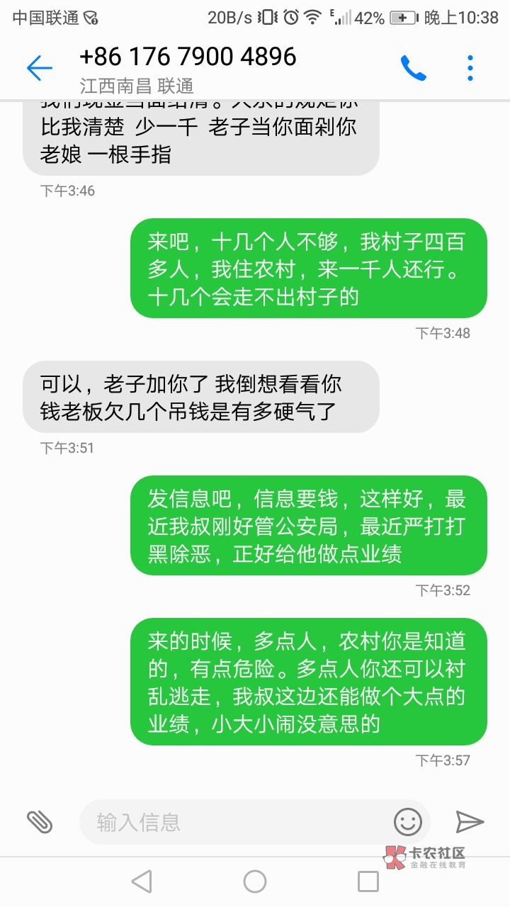 老哥你真怂,说这些废话有什么用,上门还会和你说这么多废话?我和你说,信息别回,微信别加,电话不接,这是对付催收最好办法