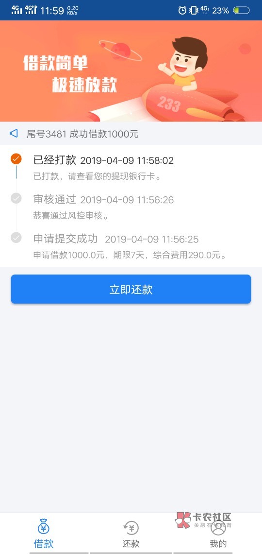 诸葛钱包让明天收短信,这个秒申秒打款,太干脆了