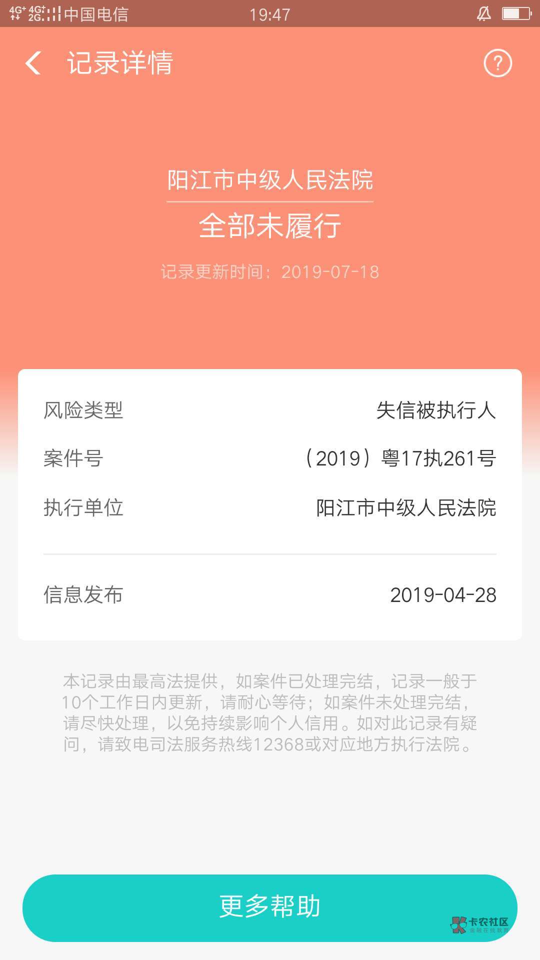 给你查过了,是大地信通担保公司起诉你的