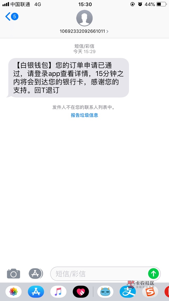 佩奇有没有收到通过15分钟下款的短信啊
