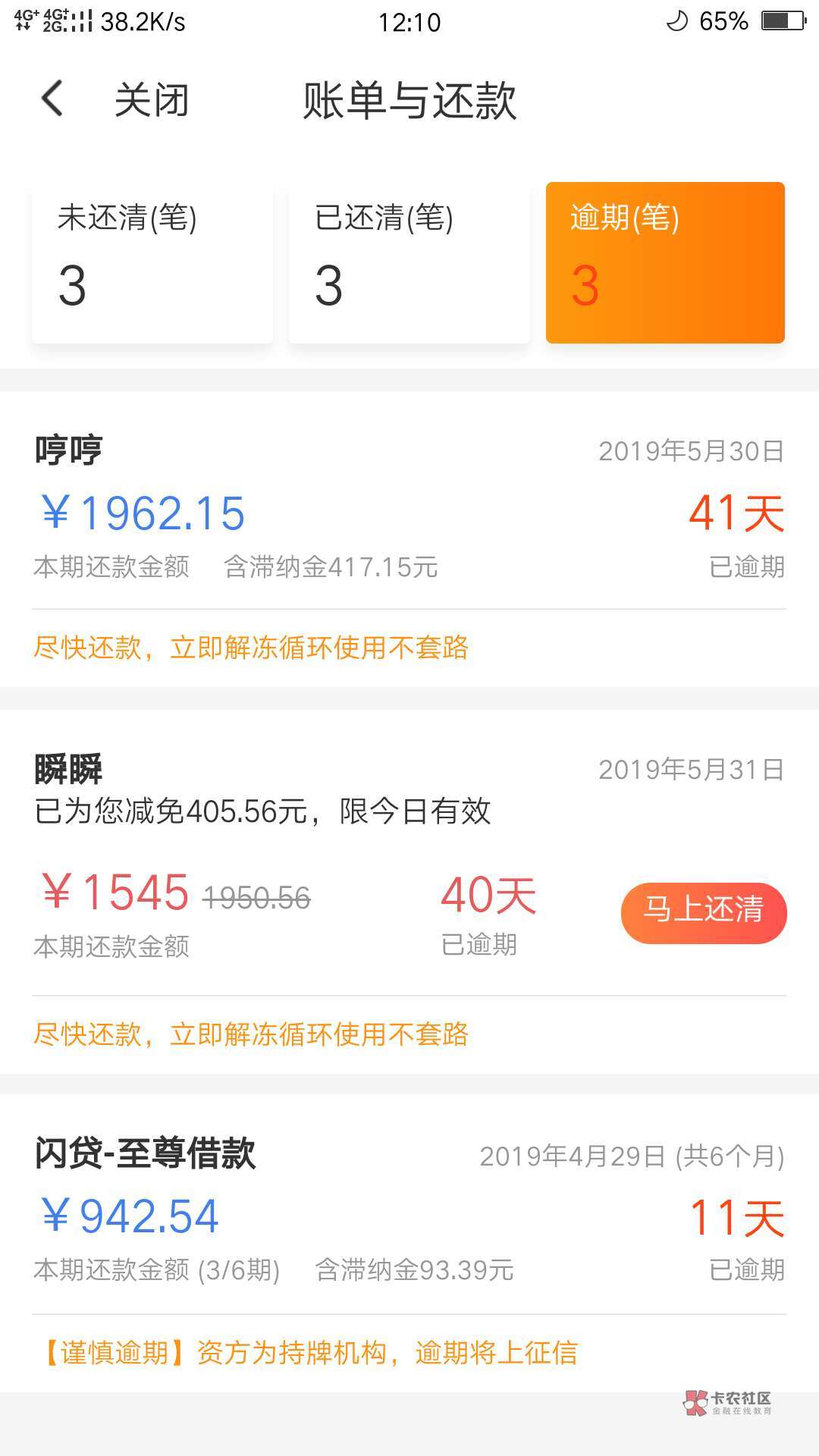 把闪银和来分期还了,别的不怕