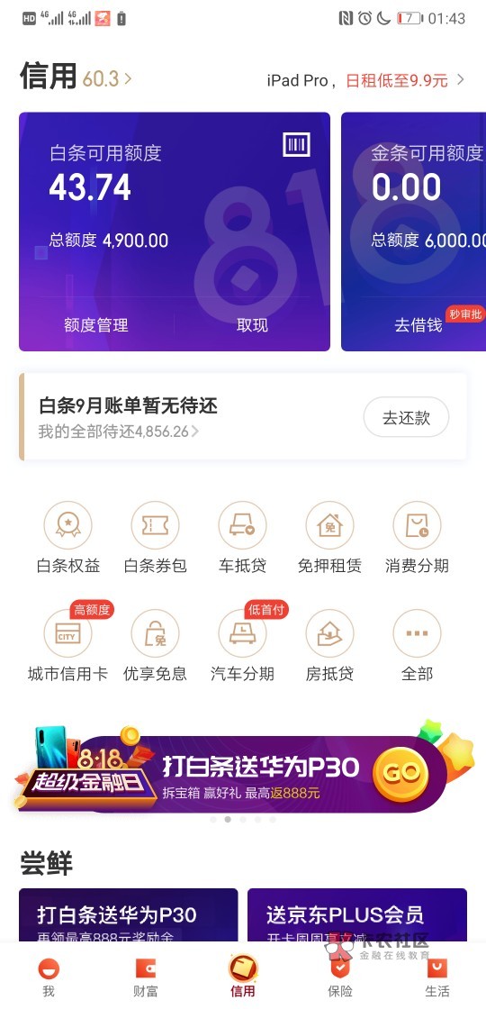 我京东从来没买过东西,你看我小白信用分60.3分