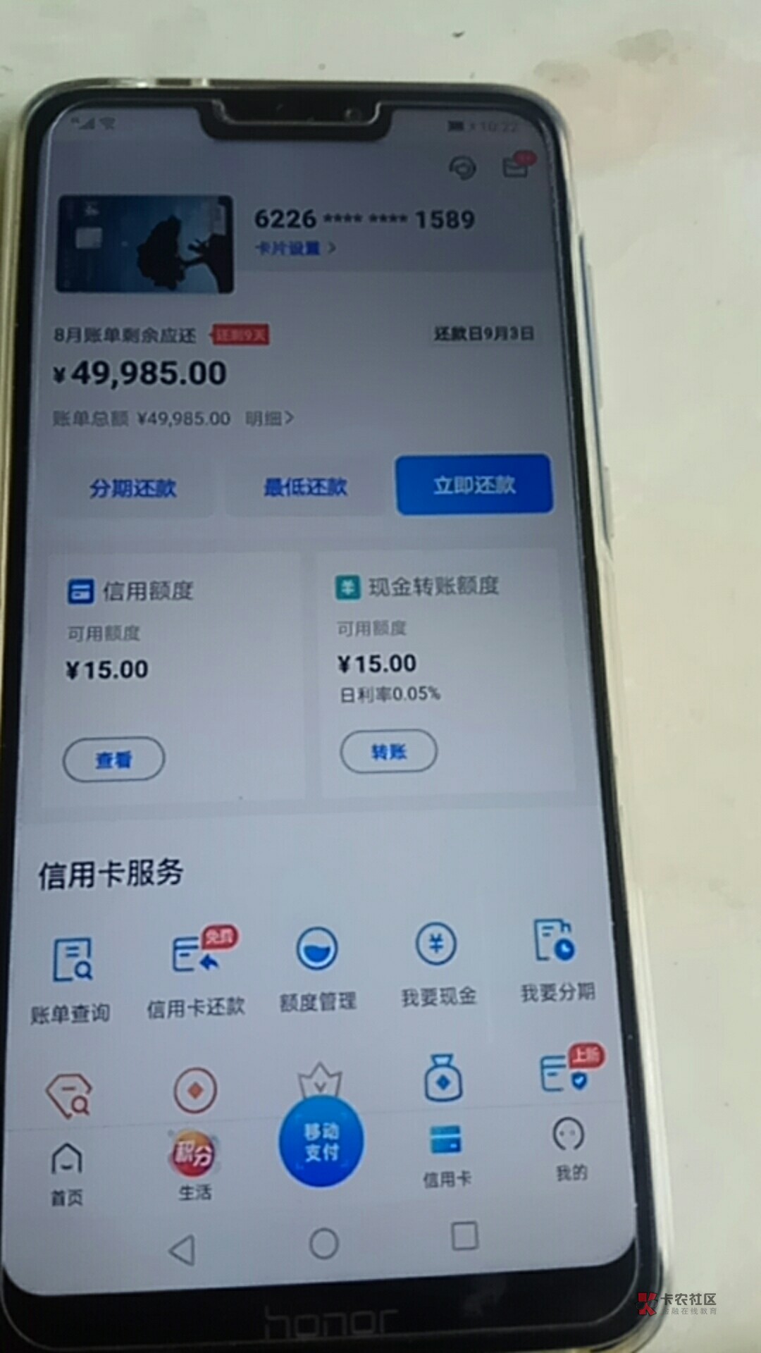 从开卡到现在快两年啦,每个月都是还最低,分期了一次。还了隔两天就刷出来。这样是不是也快封卡啦。不过交通有买个保险是信用卡代扣的