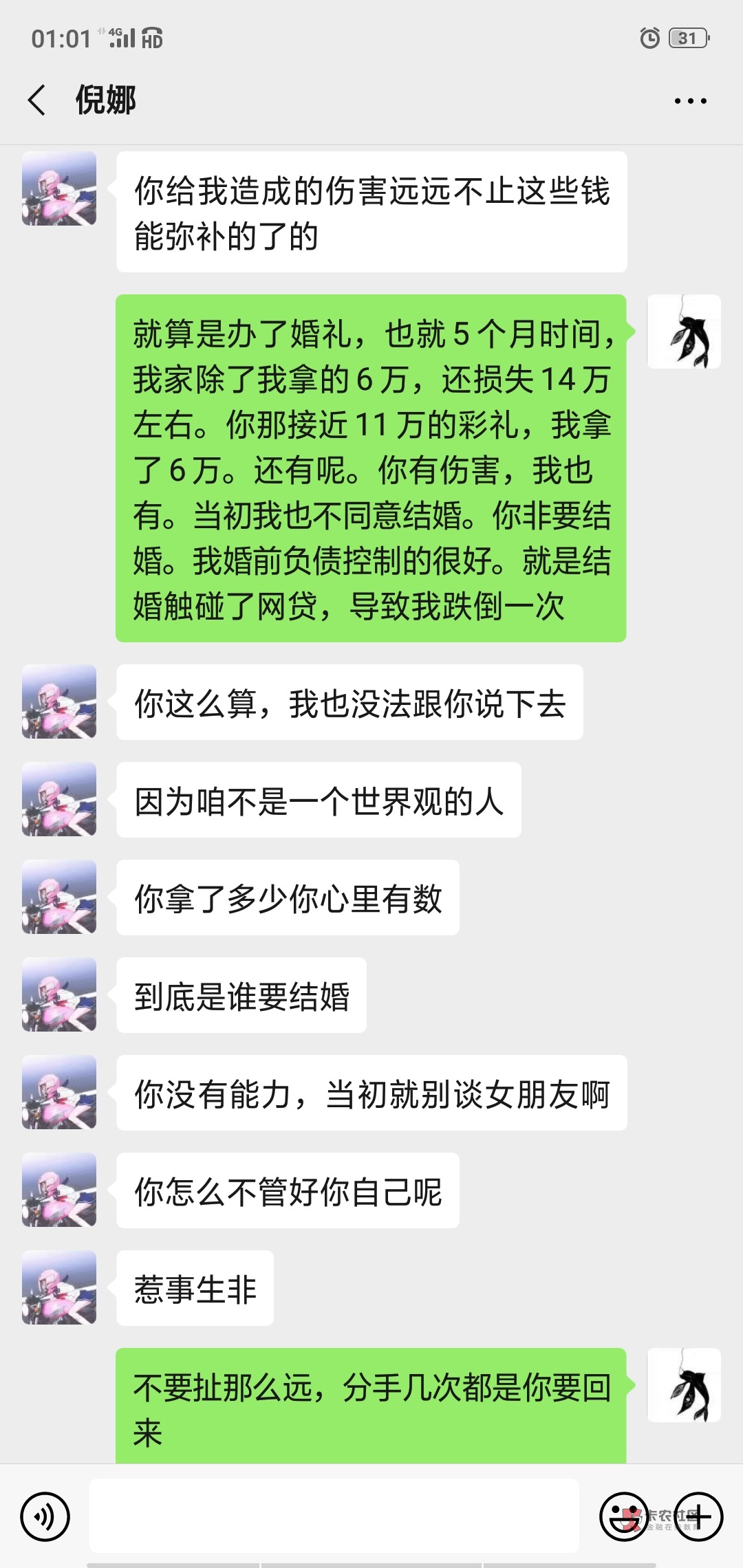 是我不给吗?联系不上好吗?她手里还有好几万彩礼钱,我们结婚5个月,结婚证都没有,我家里花掉20多万。后面店面问题,亏损40多万,加网贷40多万,之后我身上有多少都打给她,能借就去借,亏损80多万,我哪里还能借到钱,后面居然不承认我们结婚了,我就气了一段时间,结果就把我拉黑了