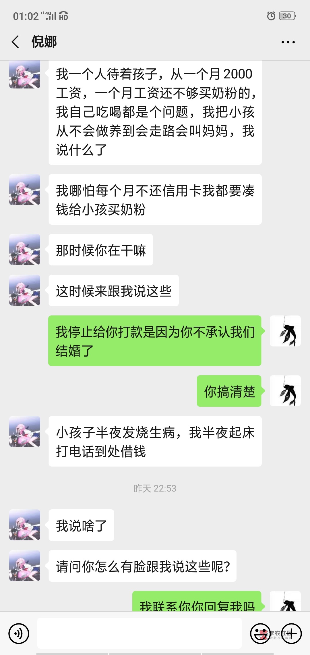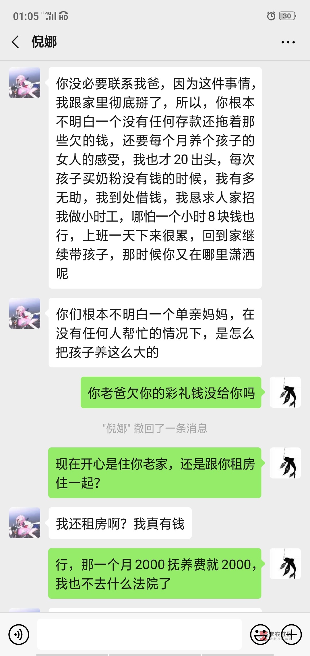 当时真的是没钱啊,我当时身上有几百都全部给她,自己一天就吃一餐饭。后面过了那两个月,缓过来就。联系她又都被她拉黑