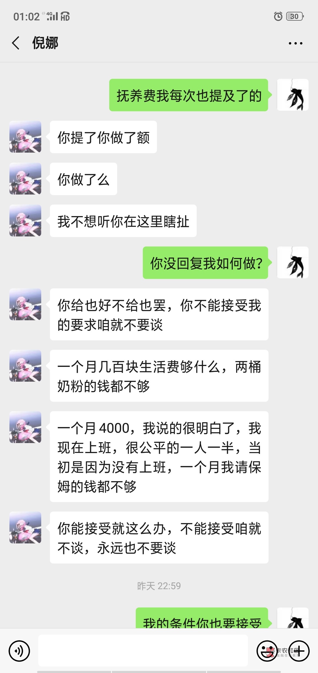 你真是恶心,大人不管再怎么有矛盾,小孩奶粉钱你每个月必须打过去,别扯那些几把没用的,这一点做不到你不配做父亲