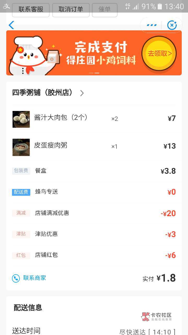 饿了么S贵配送费也贵。东西还少。吃不饱。从不用饿了么