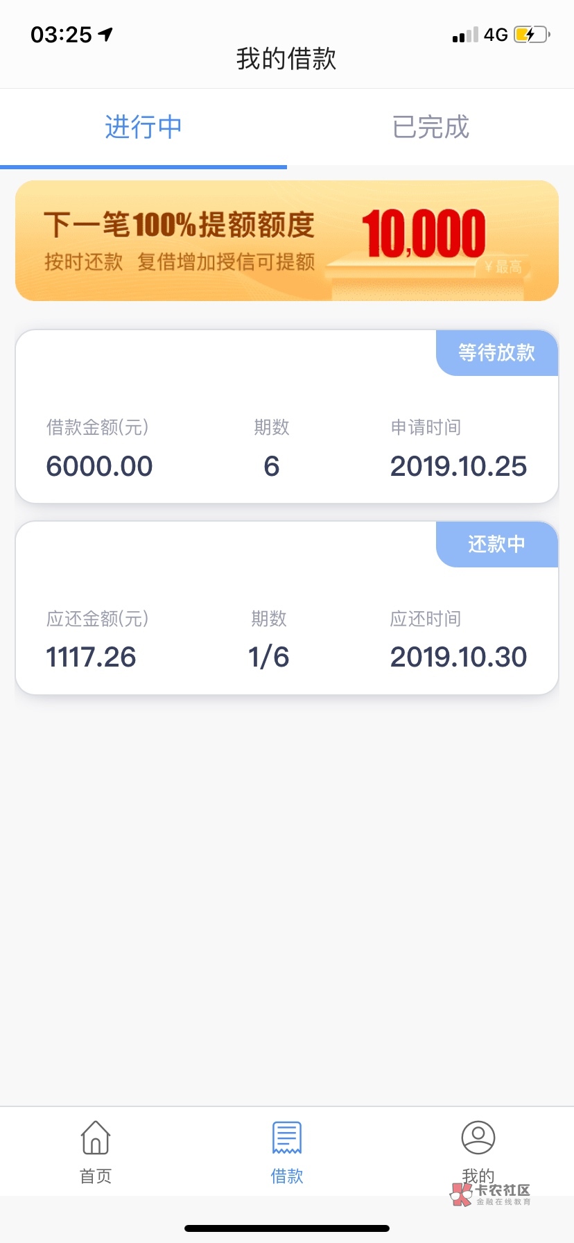 我有一笔在借中,这样子估计无缘了