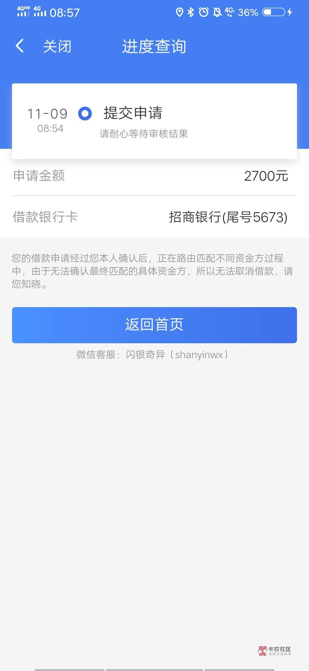 前面说过 昨天下午一点半申请的 3000额度的