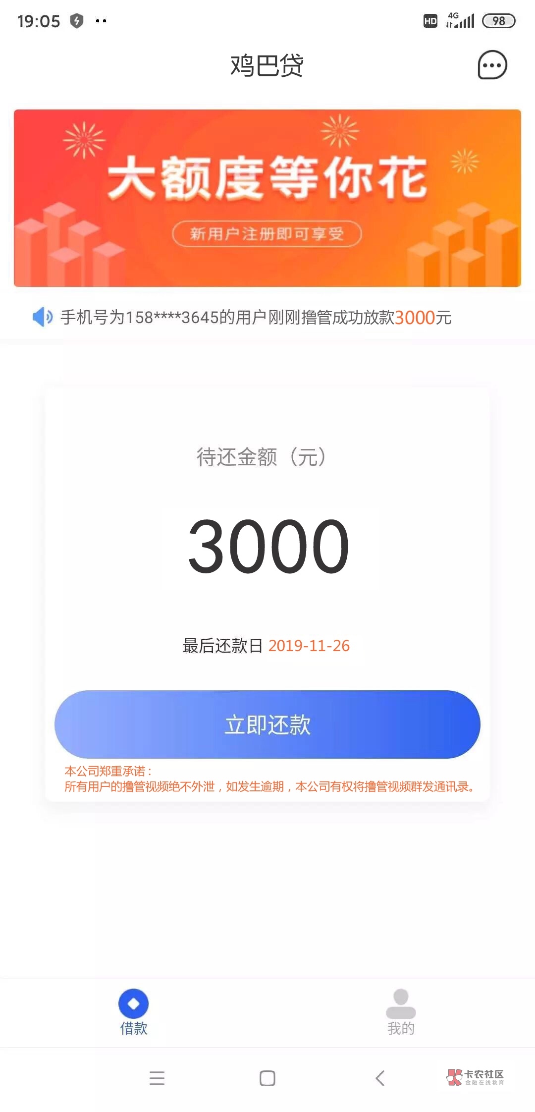 3645用户撸管成功放款3000