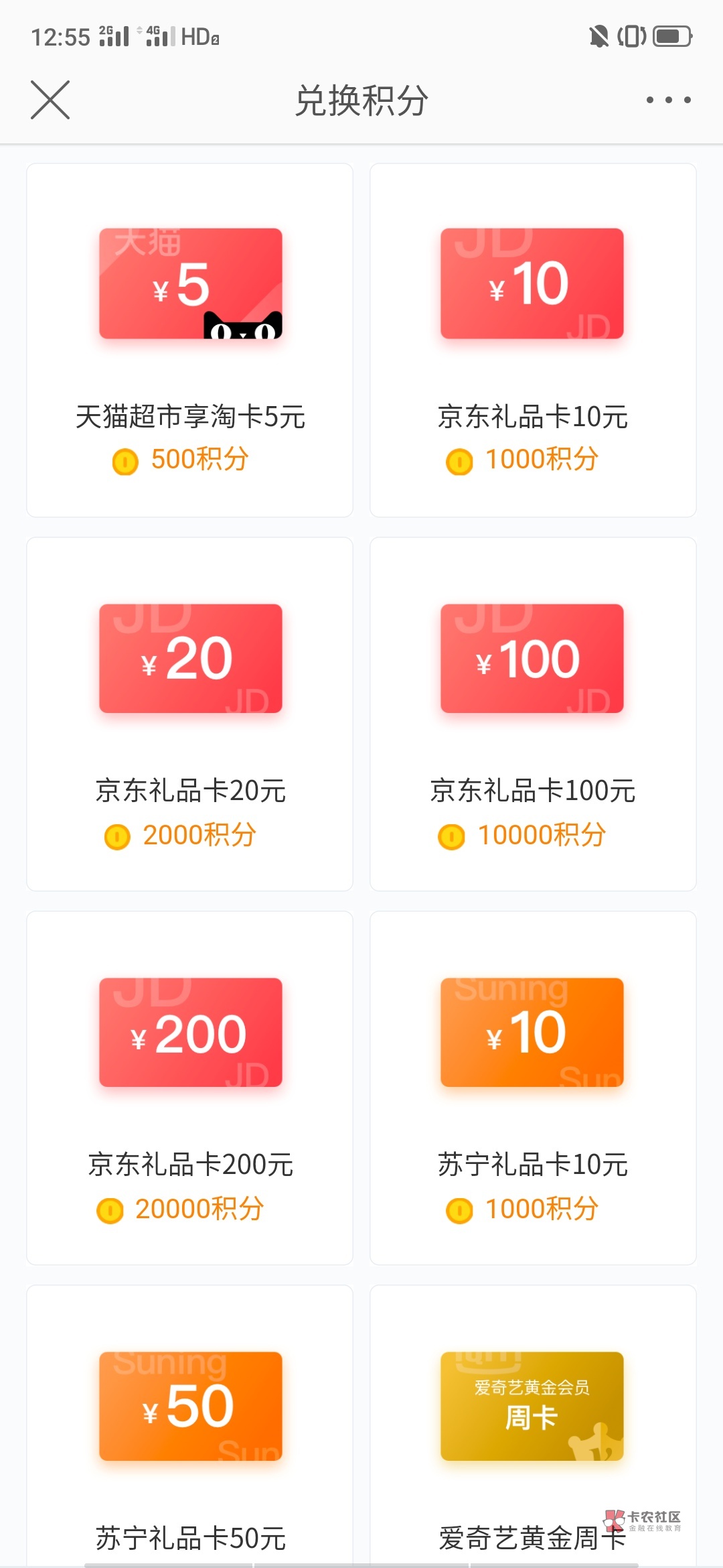 里面有积分兑换礼品卡