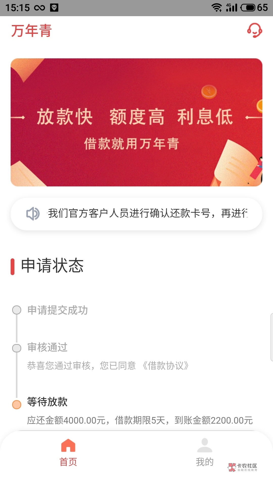 万年青,刚刚申核完新世纪看通过了马上又申请然后没有管他了刚刚进去看通过了等放款,马上到账了