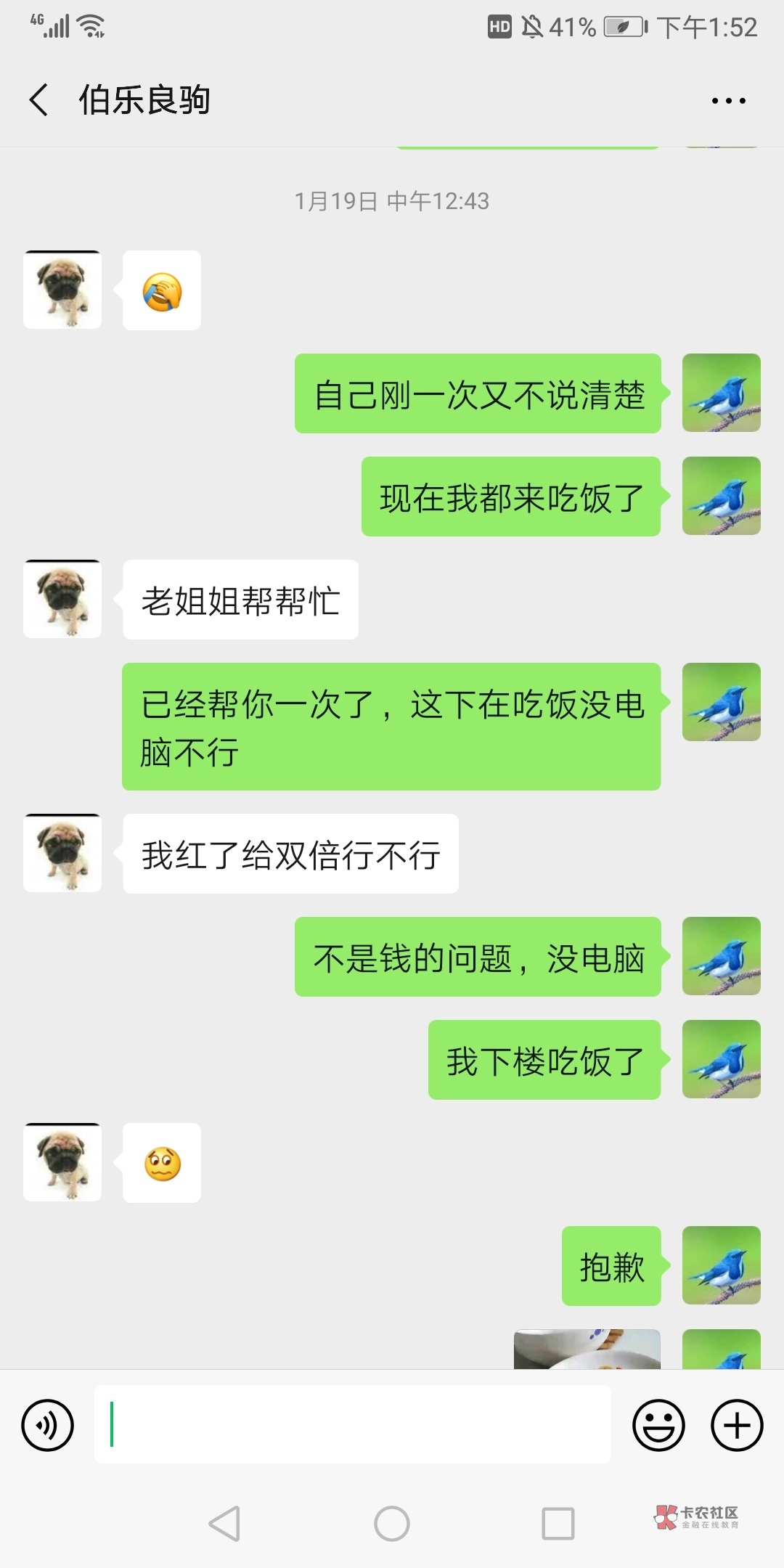 我不骂他才怪,你认真看,昨天1点发信息不回,我以为他忙,晚上发也不回,我就知道他忽悠我了,所以我刚发信息骂过去立马回了,19号p的图,今天23号,不可能一个8块几天都没有,回个信息说没有,我难道会骂他吗,人都相互的