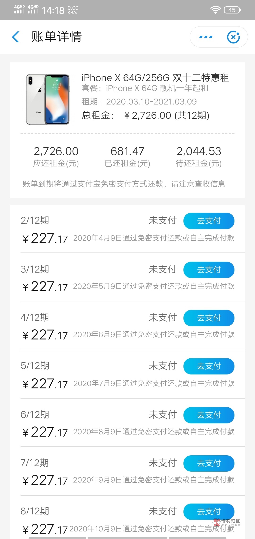 我觉得这家算划算的了,买个二手x也要3000多点,一年连买断4300。贵一千块钱。