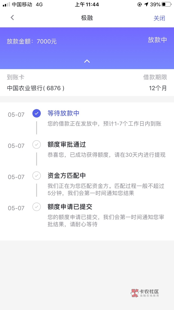 我也是昨天放款中 然而今天并没有到啊