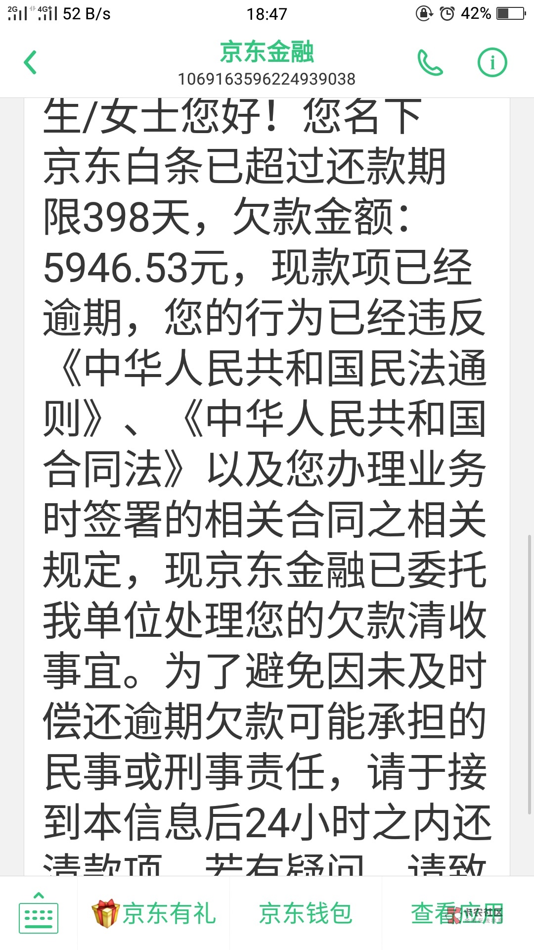 之前都是京东发发短信,这次是移交催收方,前几天刚跟跟京东方面协商说分期处理,一个月处理一点,现在移交催收方不给协商了