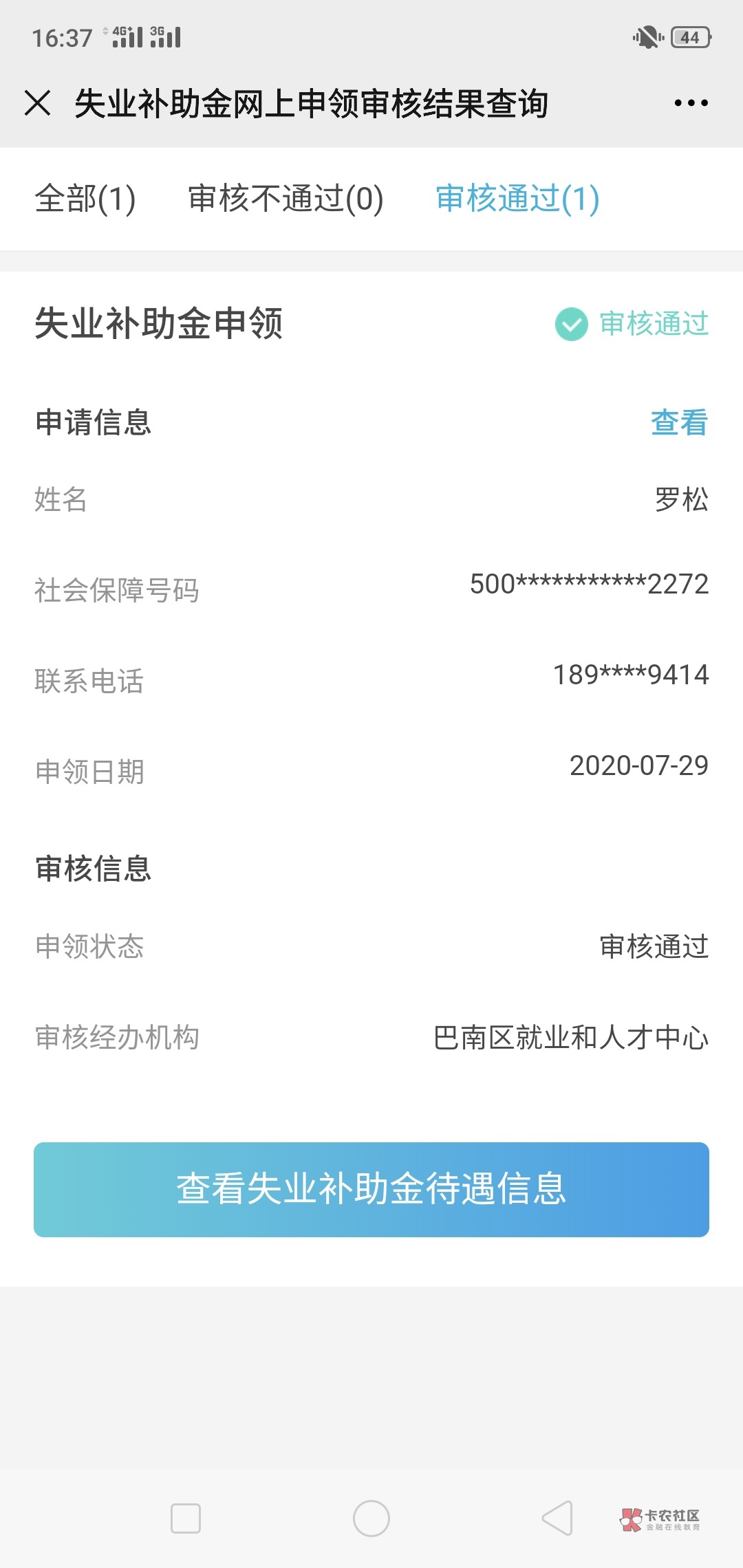 福州长乐地区上个月就通过了,没反应。手机坏没钱,实在不行求老哥帮打个电话几号到帐