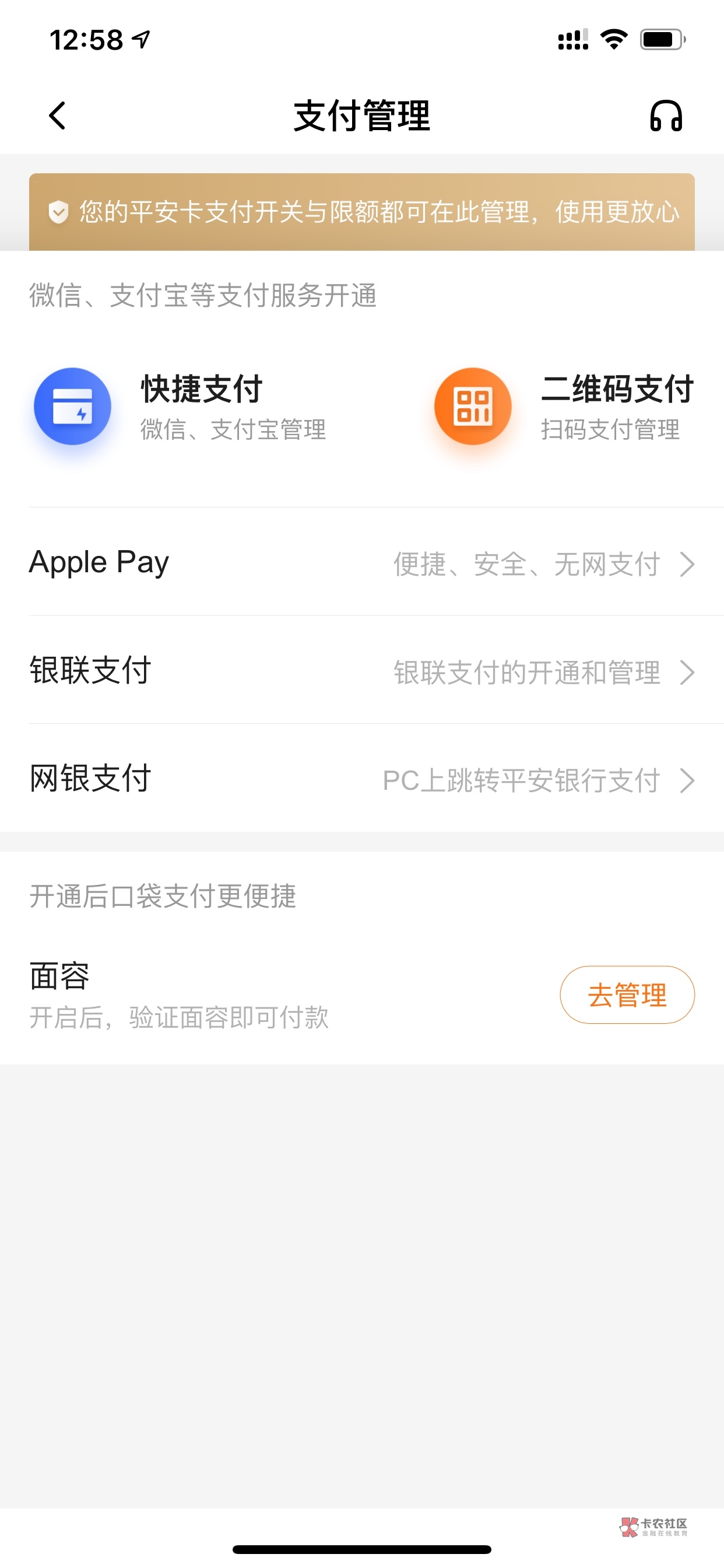 没有面容啊?老哥,你这开通的平安卡是二类电子卡吗?我按你步骤把立减金领了,,但是绑卡还是绑不了,提示状态异常,你说的面容哪里有