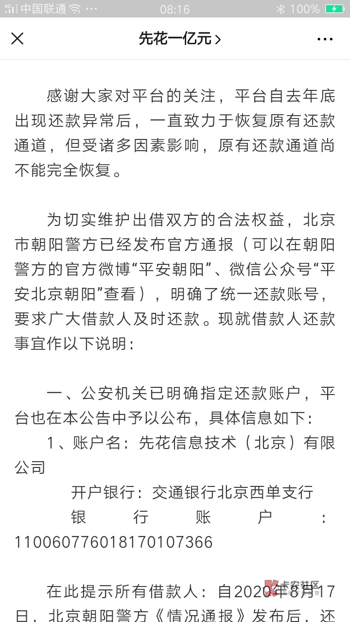 有可能是骗子,或者花生米富里面的人在造假,以北京公安名义来忽悠你们还款,打入那个账号