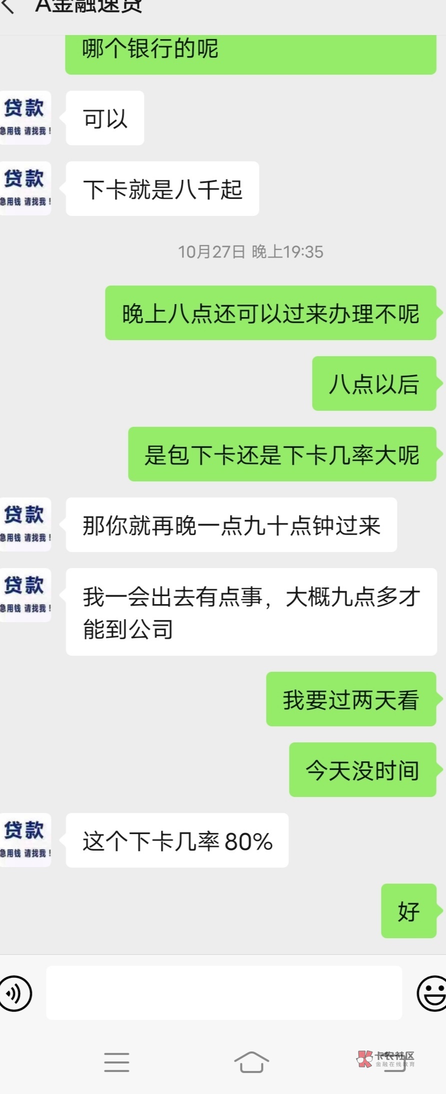 也是,我交了五百,他说帮我办两张,办了一张后来一张他再帮我操作,等了几天还没帮我搞,我还找他退钱,他退我了,当时他还说我钱难赚,我当时想的是他拿我的钱不办事,反工都办了一张,所以就不要了。哪时我还吊他把他删了。现在下水了来到卡农见的多了,才知道哪个中介真他.良心。