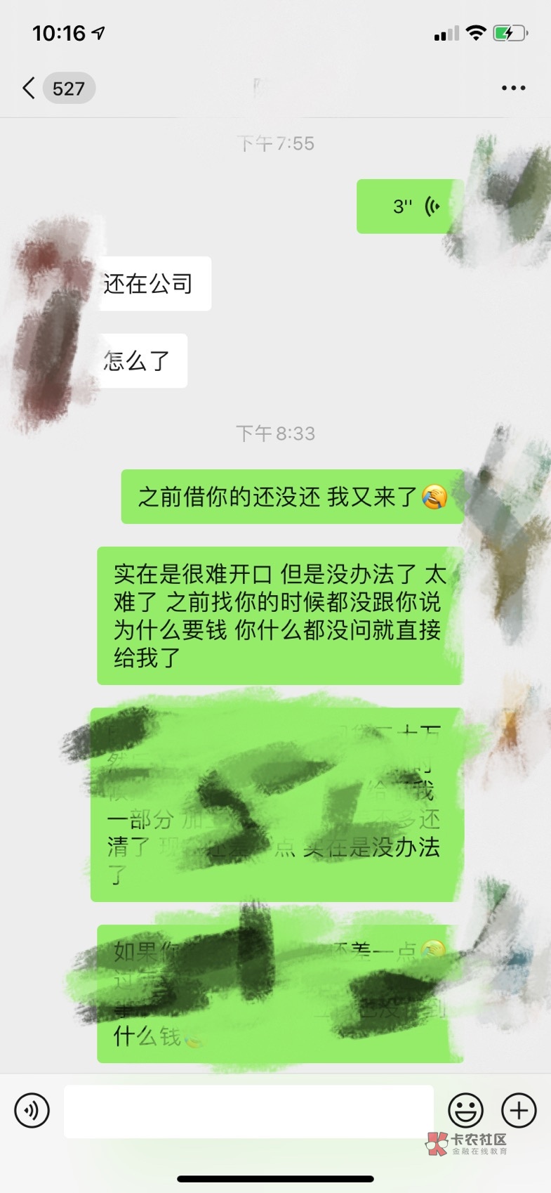 以前我找个借口开口十万八万都没多大问题,后来五千八千也基本能搞到,再后来一两千基本没人搭理,偶尔会借到,再再后来发几个消息都没人搭理,要不直接给我发个微信截图没钱。