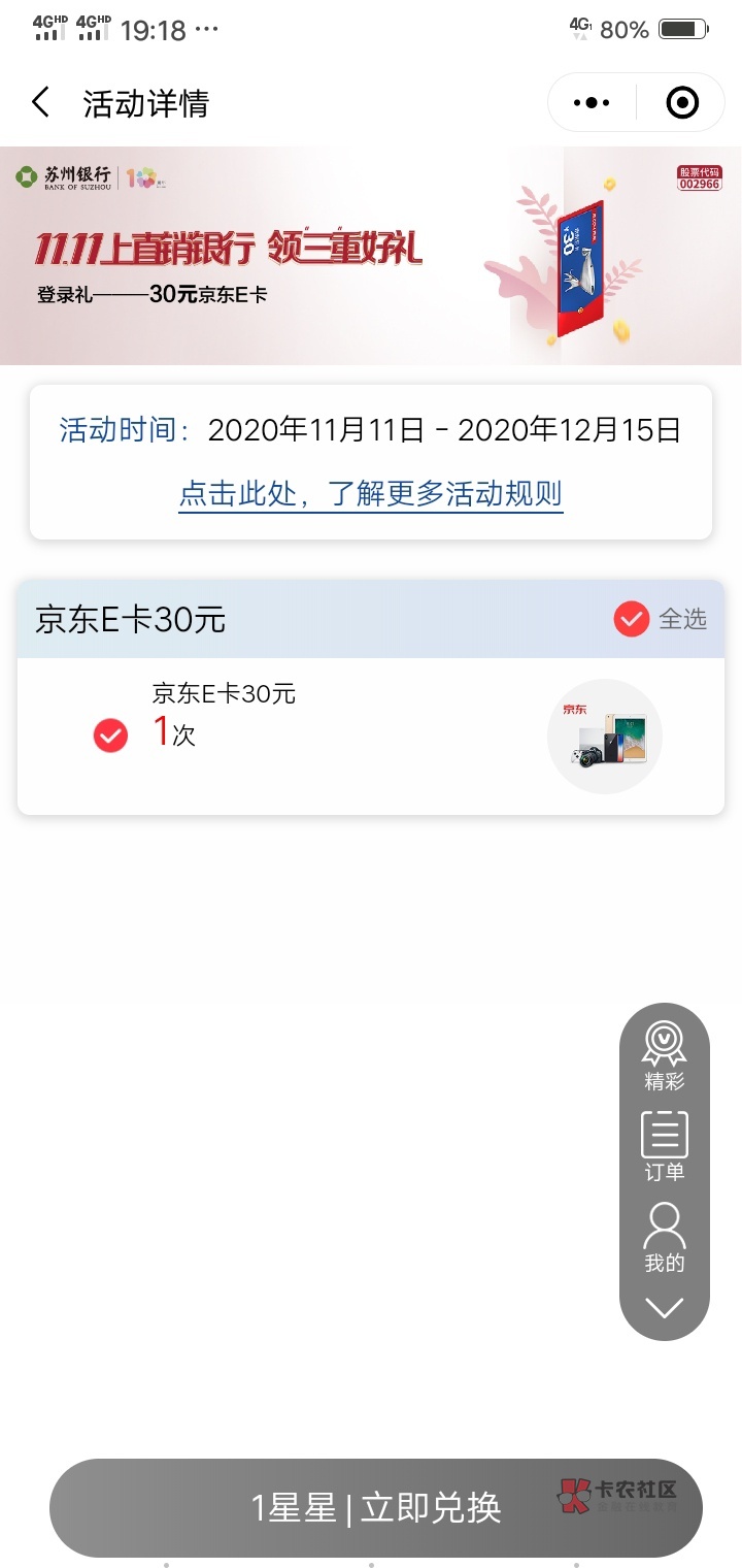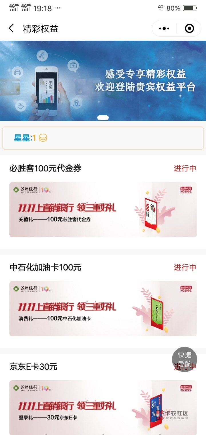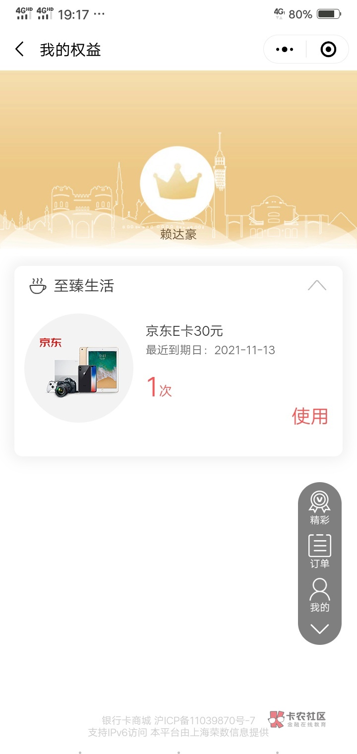 小程序我的权益点进去然后就能看见了