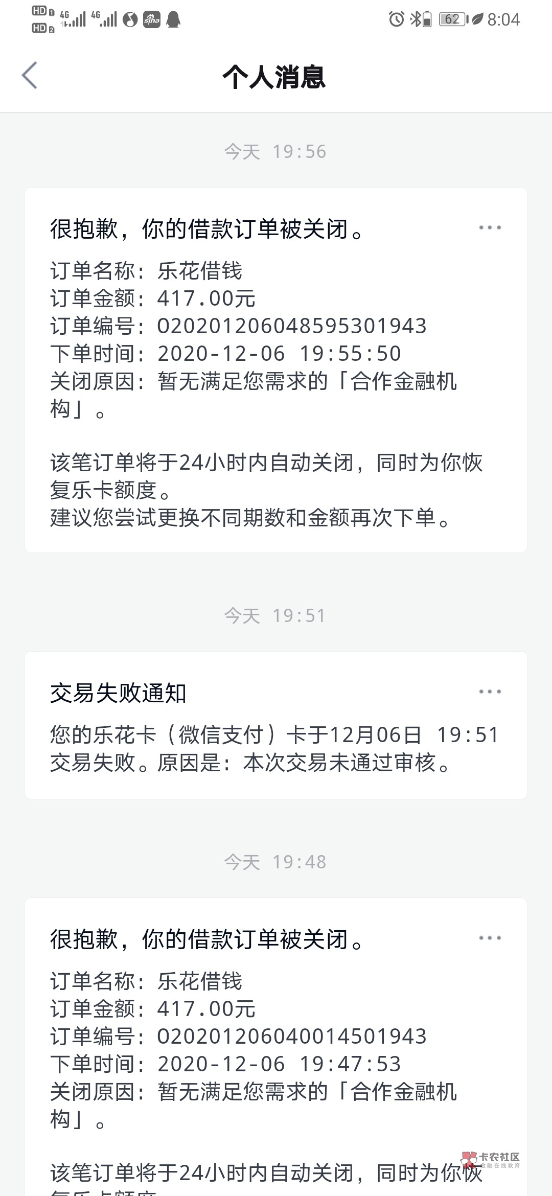 我的微信充值显示暂无分期数,改分期数,借款显示下单未成功,是不是凉了