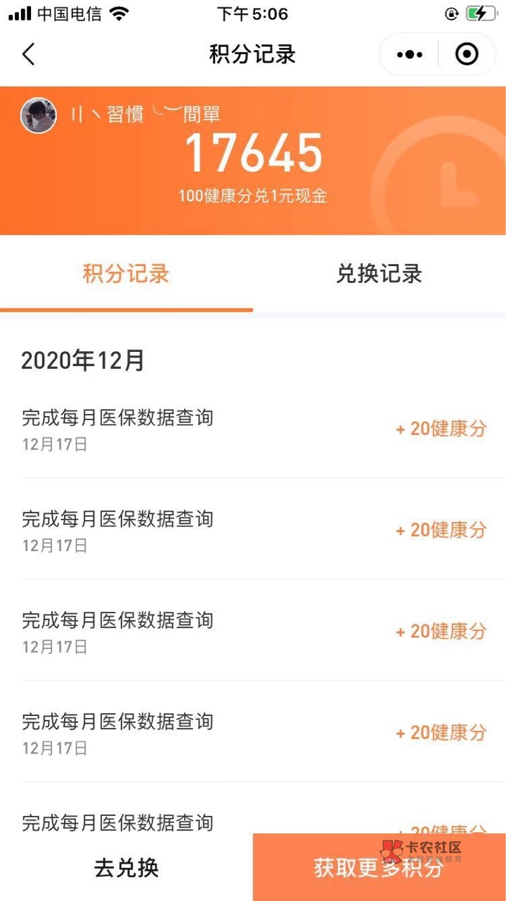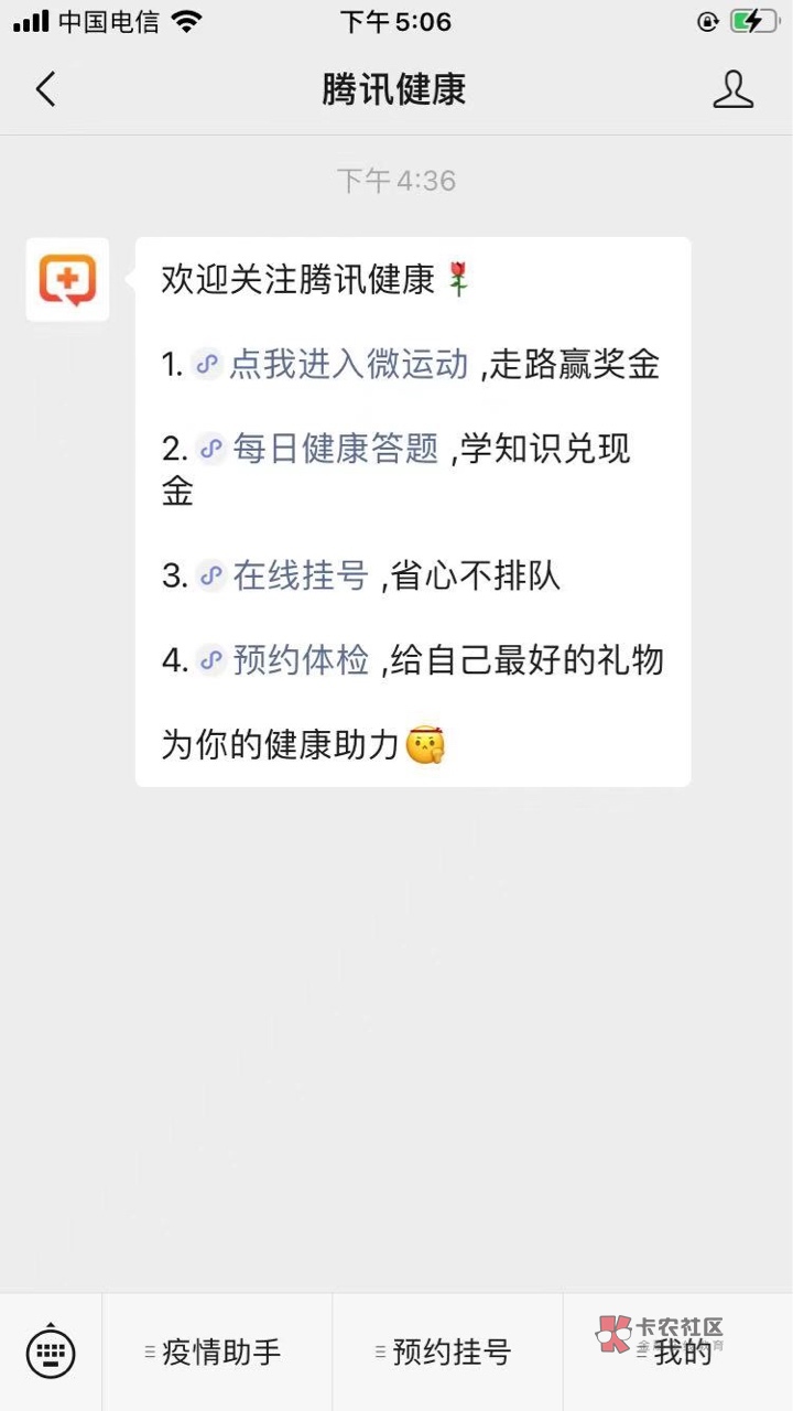 腾讯健康公众号。然后点答题那个。 然后可以一直点每月医保数据查询。提示服务器异常。但是健康分一只加。 退出来再进去。健康分也在。 苹果手机。 苹果手机