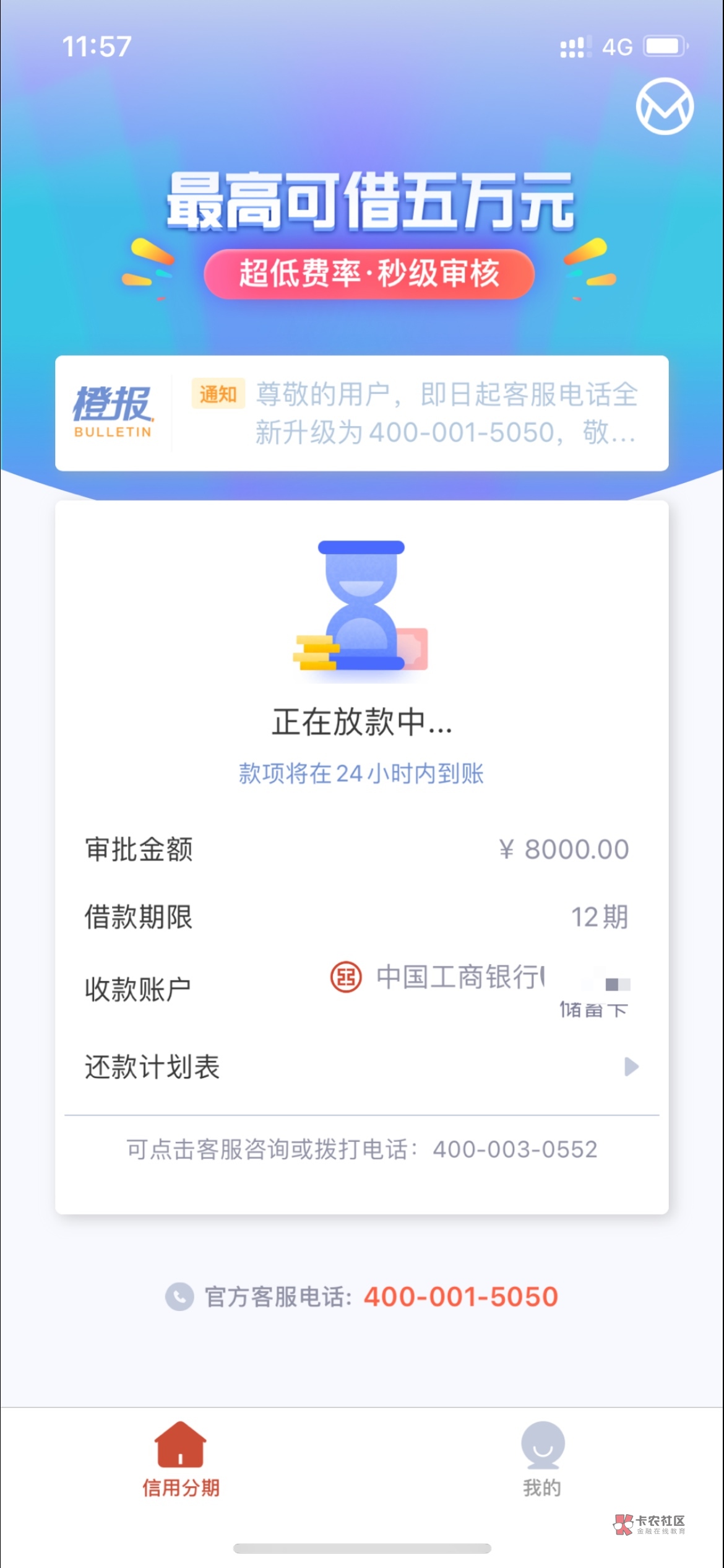 我也是第一次三千额度 提前还了最后一期 涨到八千 半小时左右就到账了