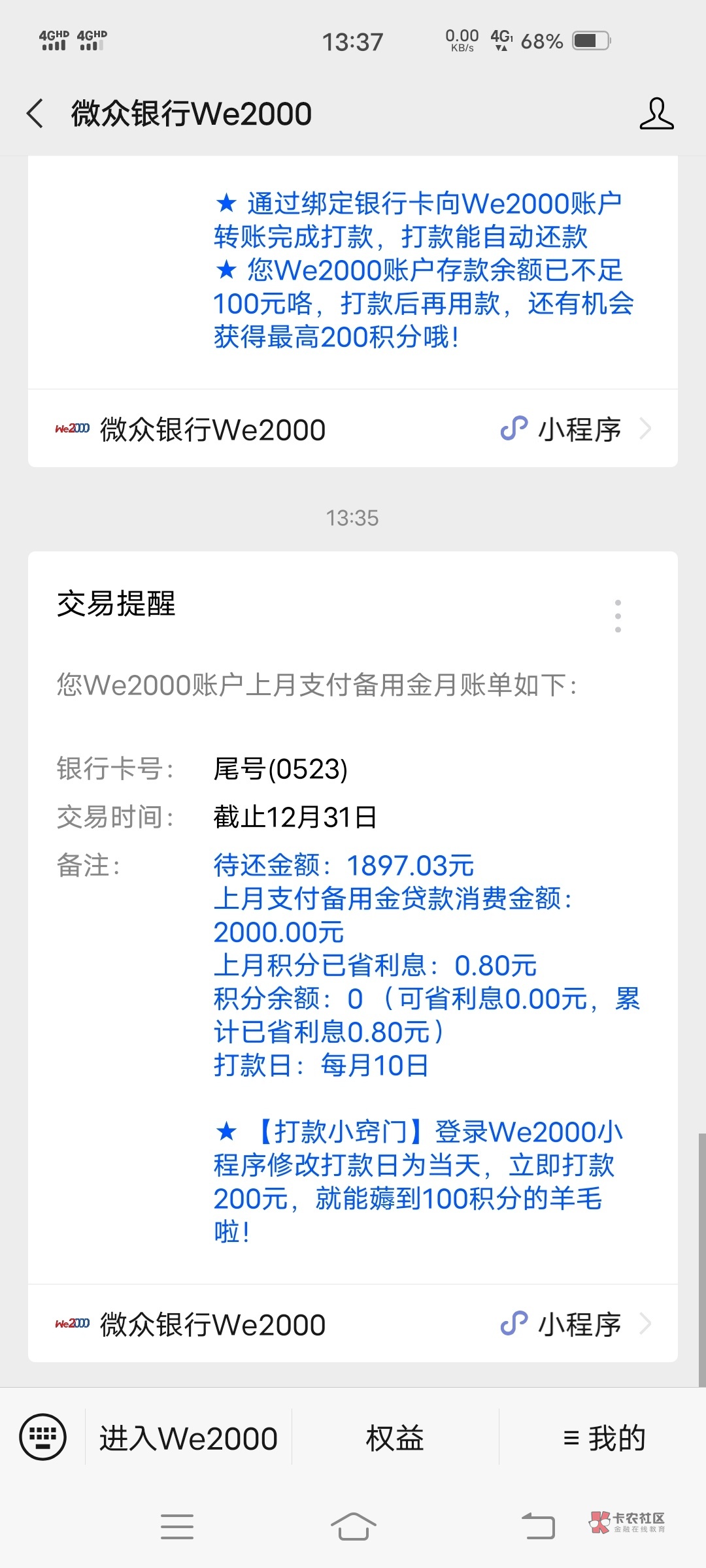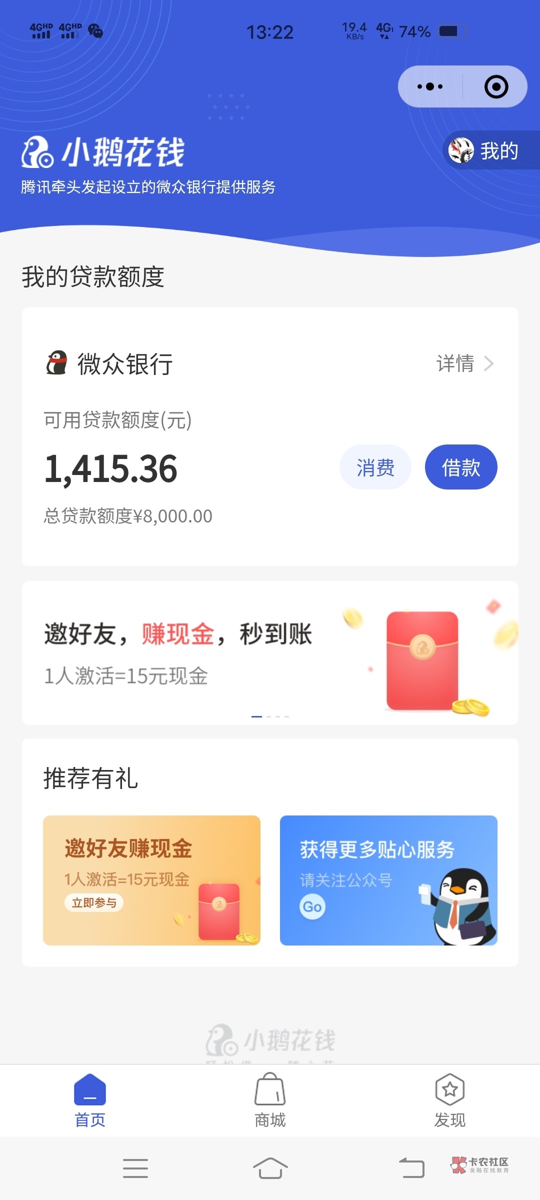 我是凌晨把小鹅分期了,we2000还了200进去,今早起来就来短信开通了20k