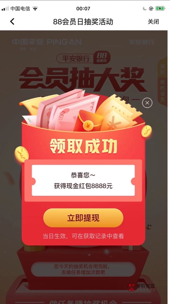 招商昨天抽了3个5.88中奖率百分之95好像 今天抽既然谢谢参与积分抽的