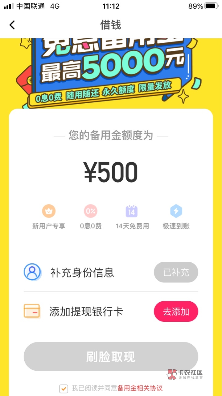 我刚试了下 直接没有备用金 说不定稳了你这个