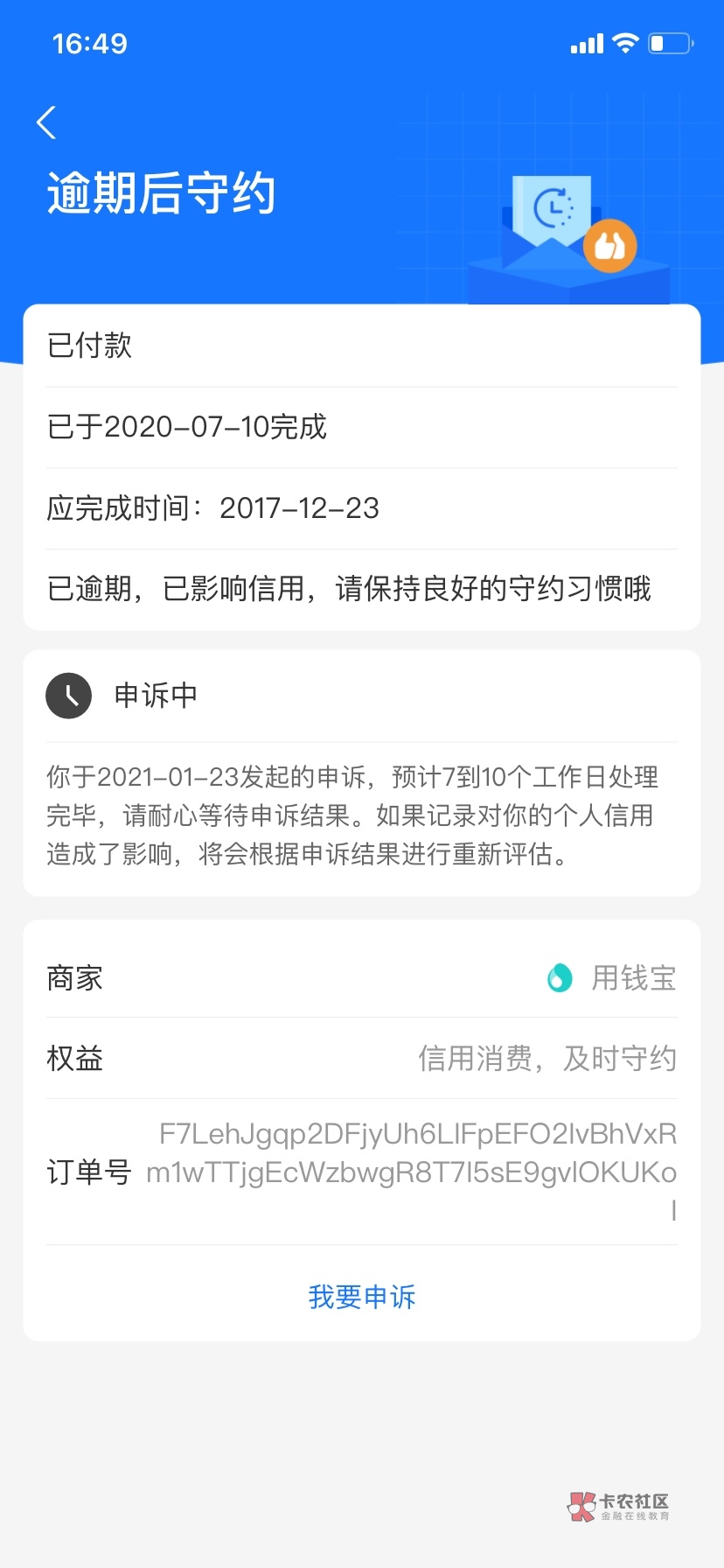 逾期还了钱,是个人就可以申诉成功,这TM跑来发帖,SB
