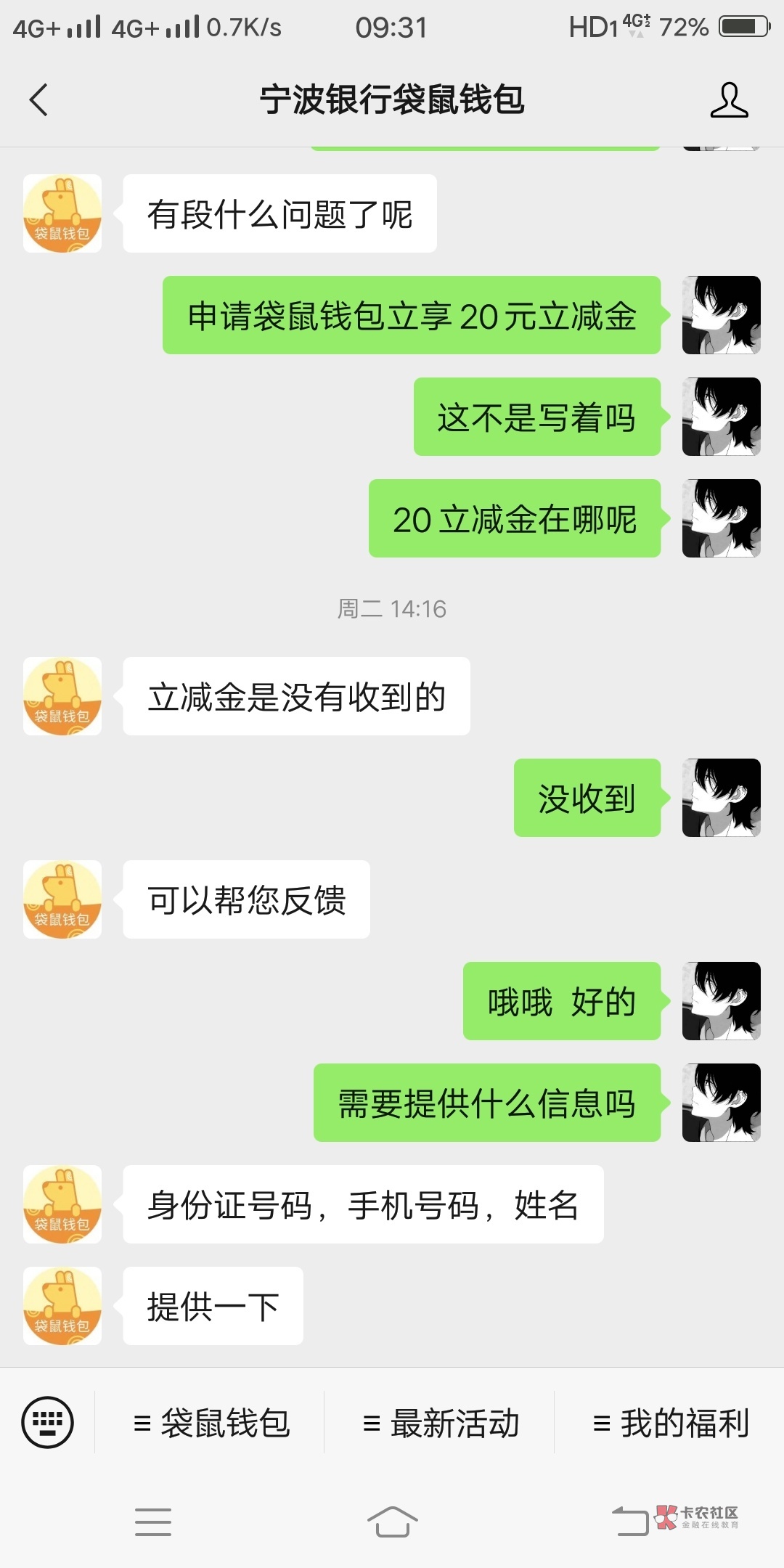 跟客服说了,记录了我的身份证名字电话号码,你的事多久到账的立减金呢?