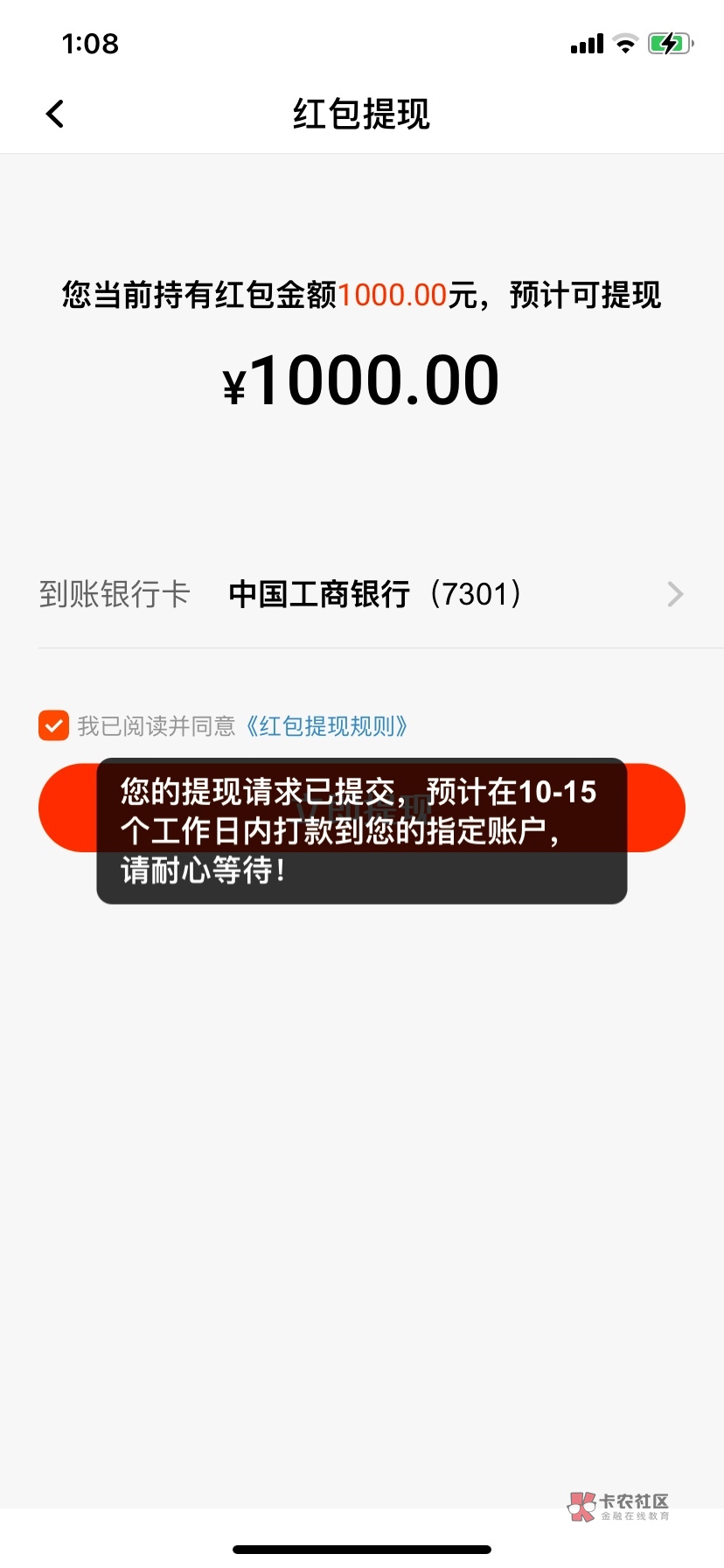 到账说一声 我也中了 怕不到