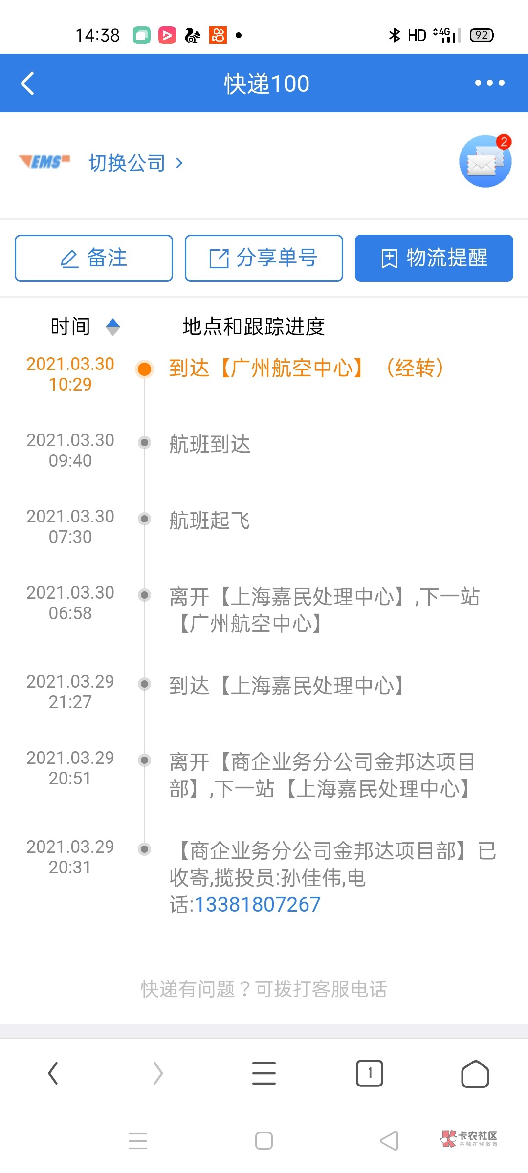 昨天到还是今天到的,我的现在在广州航空