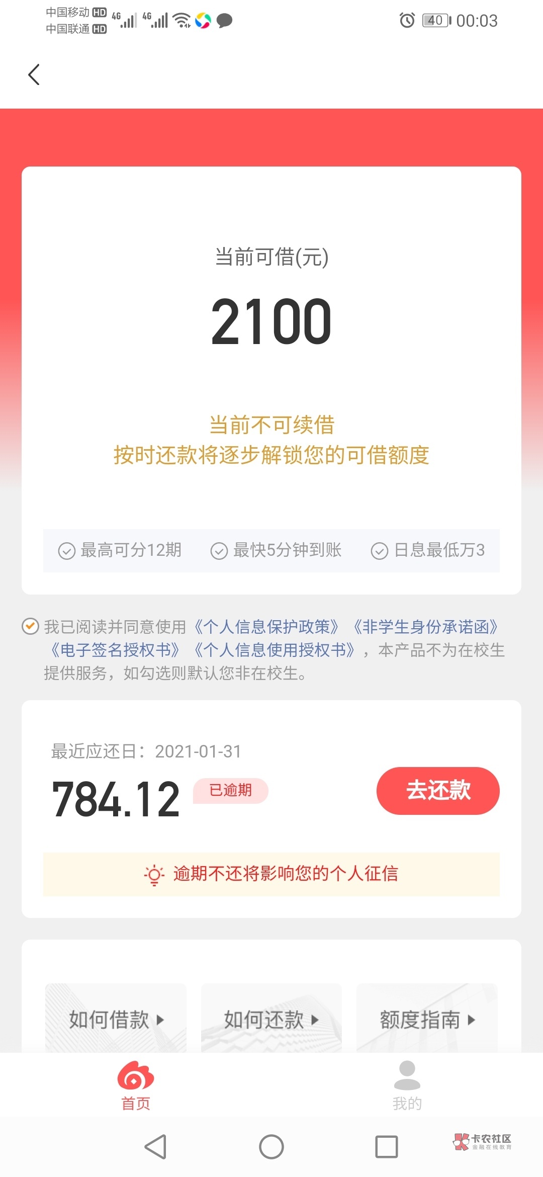 工作两三个月还清了,于期就于期,没事的