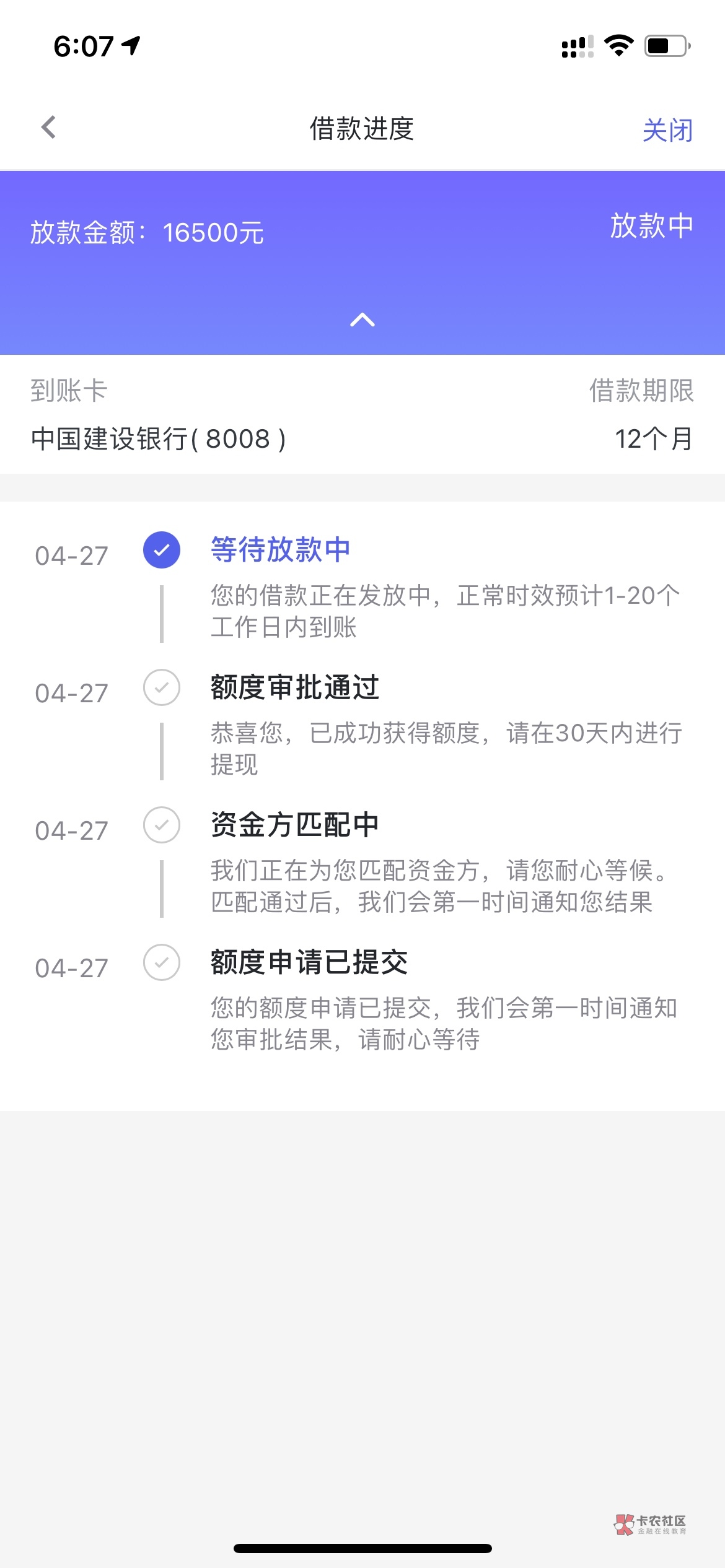 ,不看你们发帖我都还以为没到账,app上面还显示放款中米房¥财务互推 发表于 2021-04-27 18:17