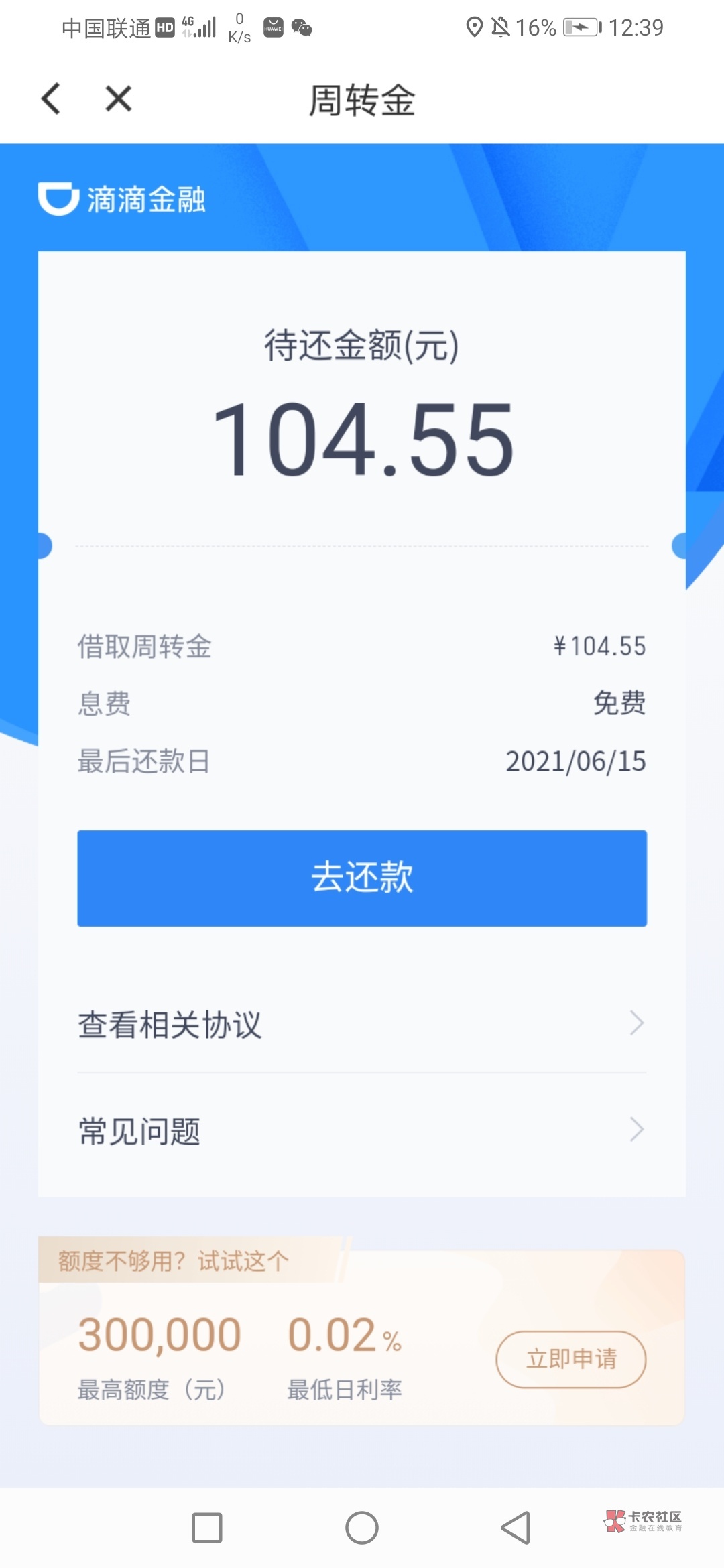 你就在滴滴上看有没有周转金的入口,我之前也没有,今天看到的