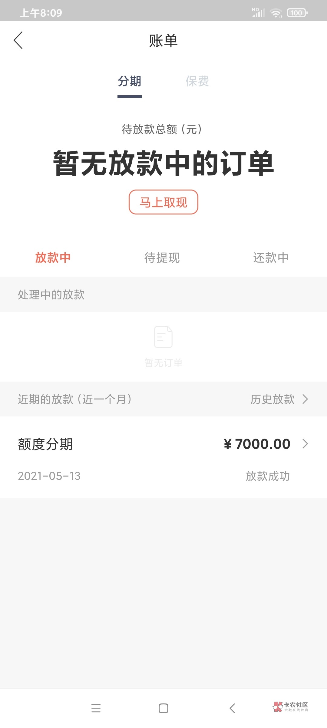 楼主借款时有显示执行放款那一项吗
