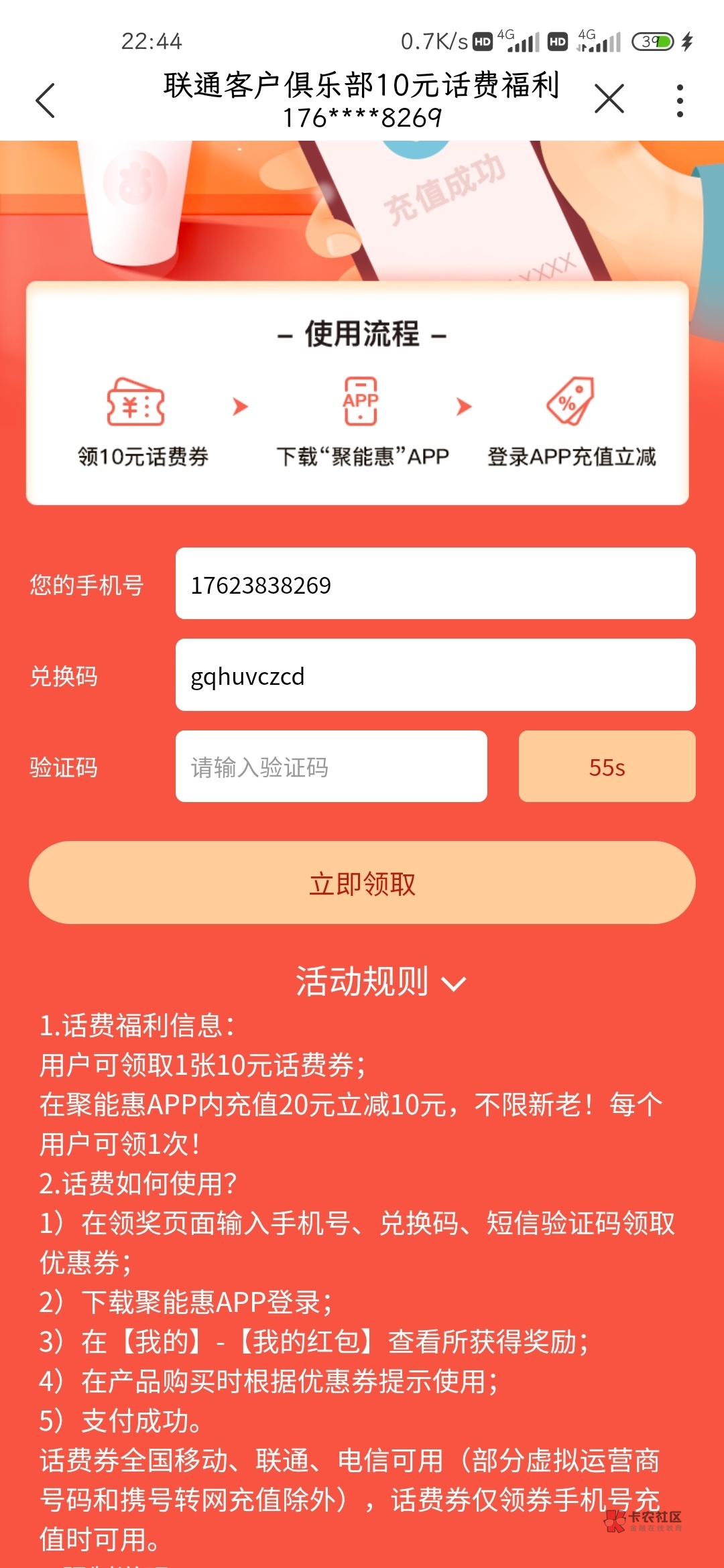 充20减10块