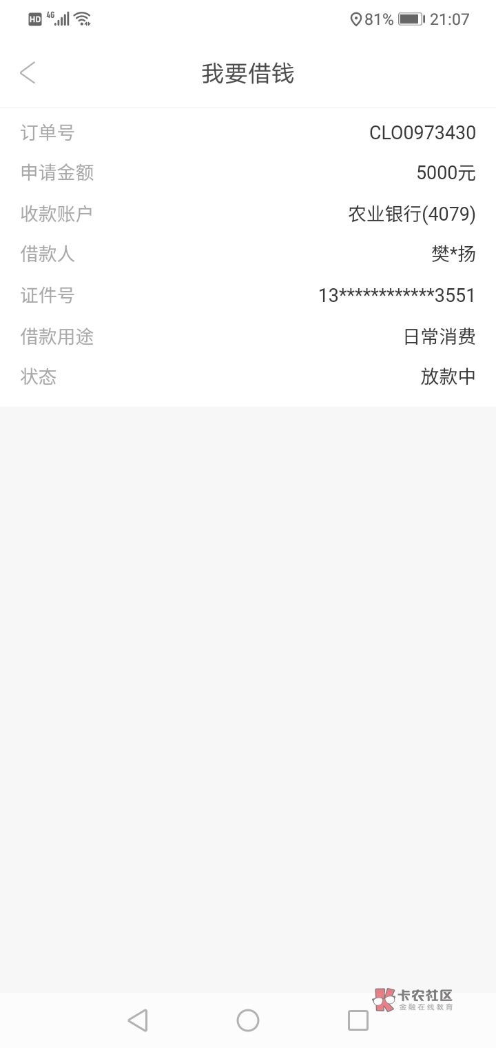 我的3天到账。不用报备5000的,下款扣799