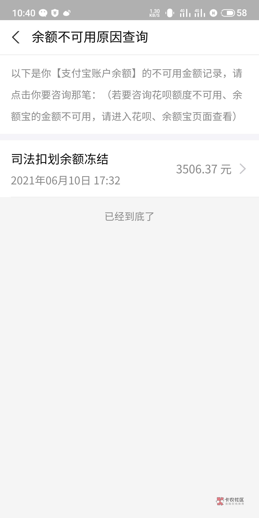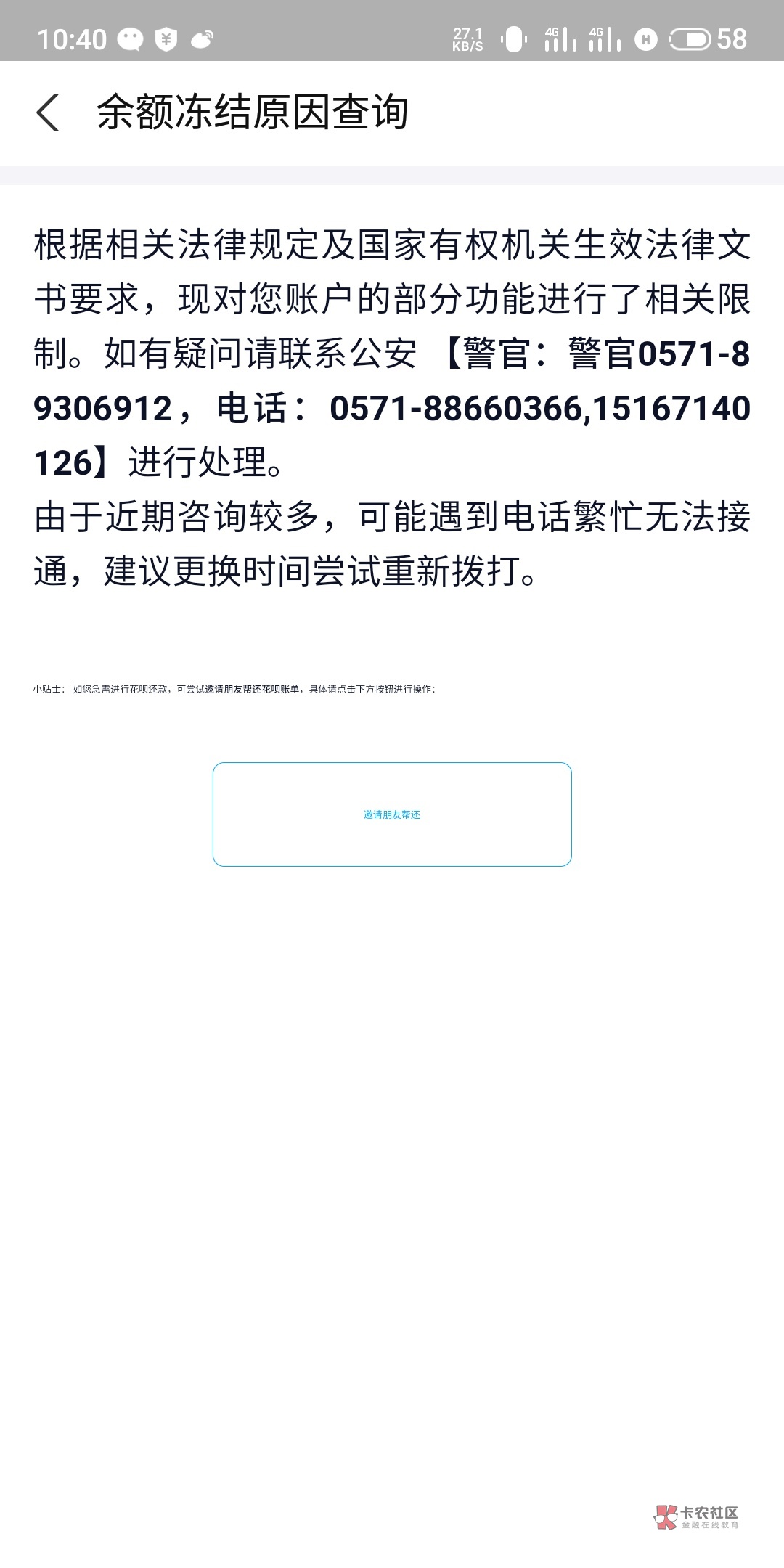 还个毛线,公安局冻结的,我就没还,过了一两个月自己的又解封了