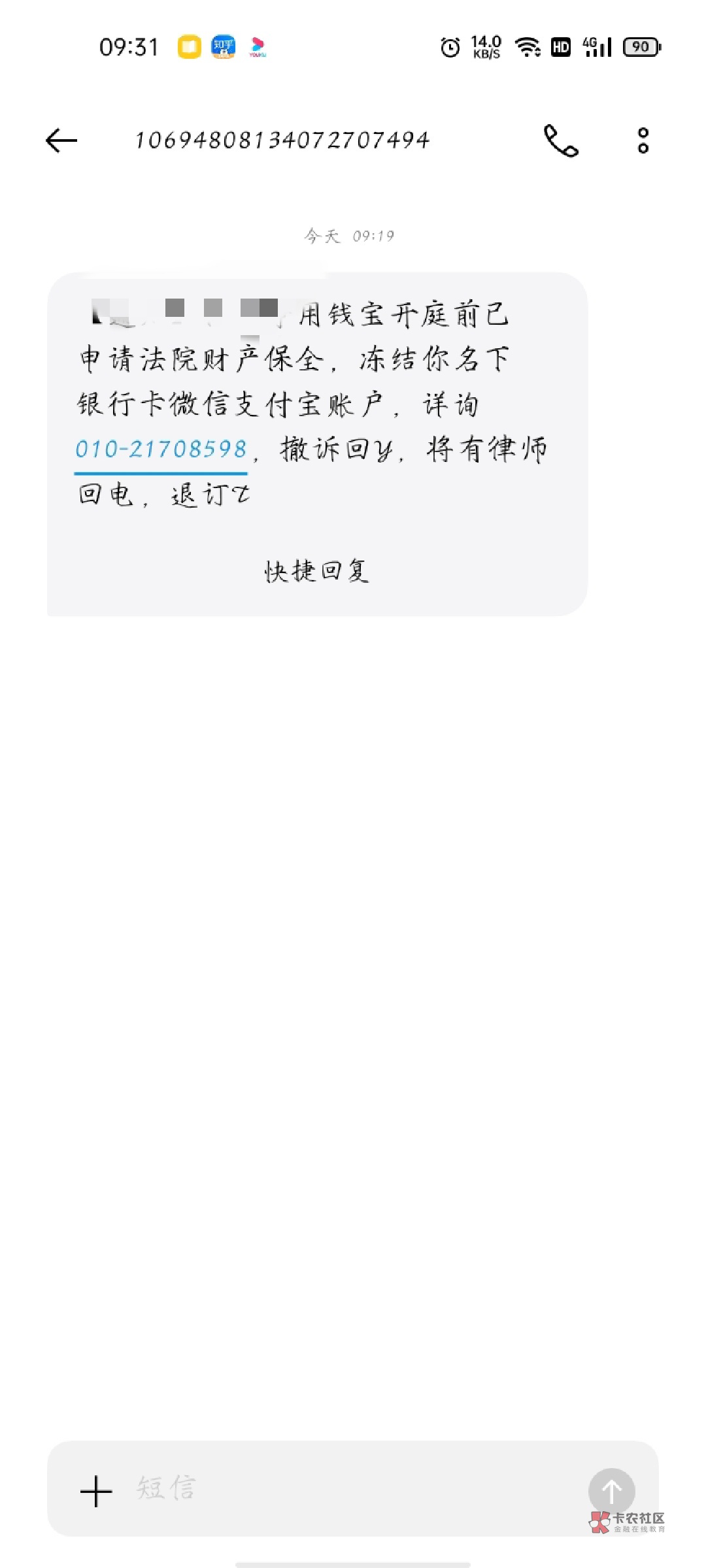 我的四年了,今天两个号码都收到这样的短信,应该是假的,