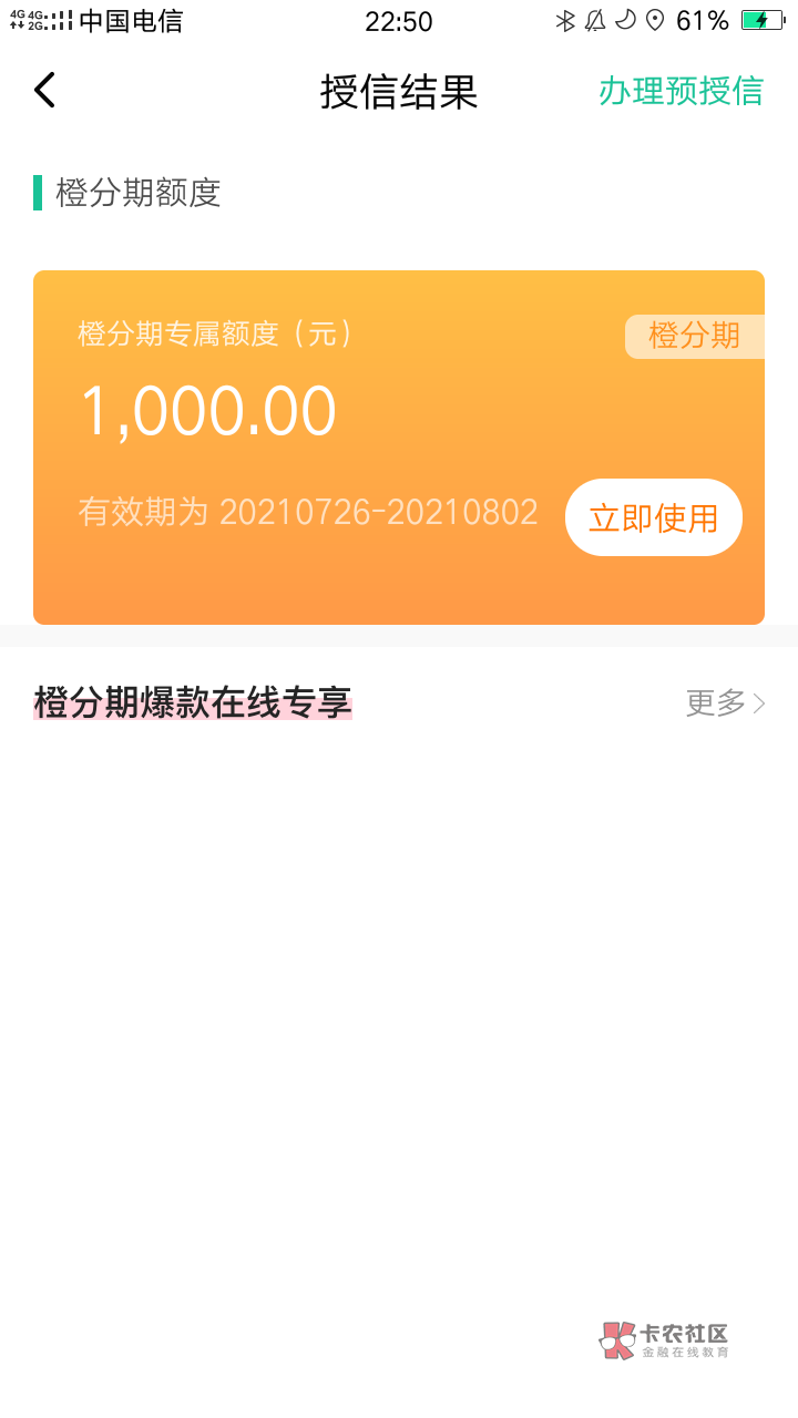 翼支付,搜橙分期。我有2500额度不知道怎么用。之前用电信微信端的惠支付拿了1800。