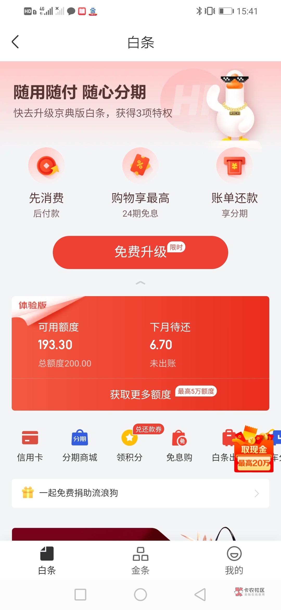 我就是直接点白条就开通了200,全部买了吃的