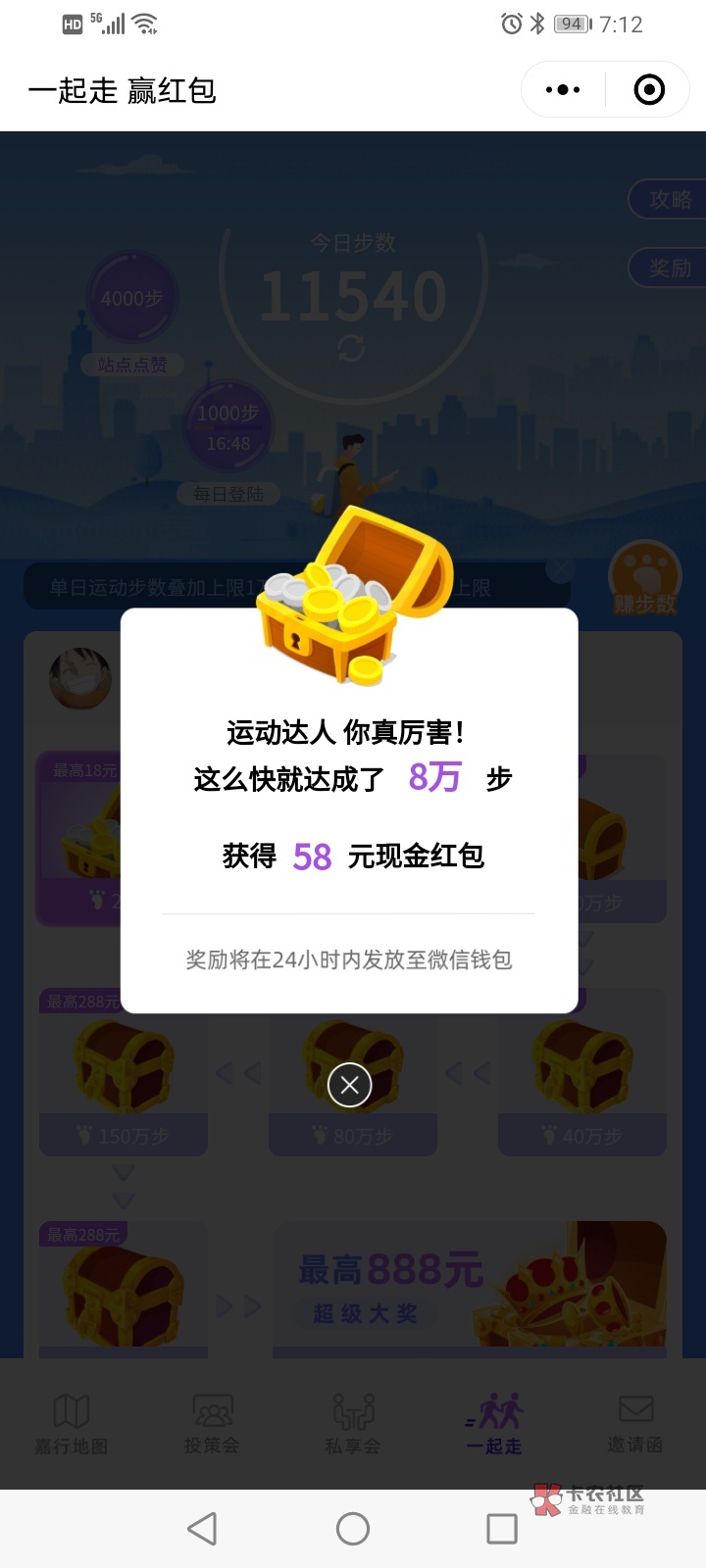 我是到了8w步的任务,2w就领了1.8,今天8w领了58,第一次当好运g