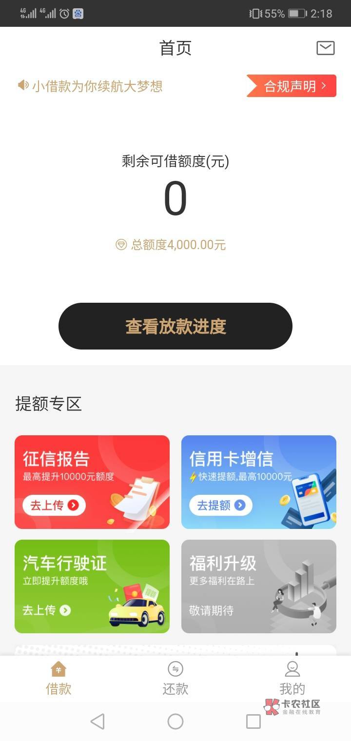 我也是 提前还了降到2000 刚刚看你的帖子 上去看了下 又回来1000 申请借款发现提了1000 总共下了两千