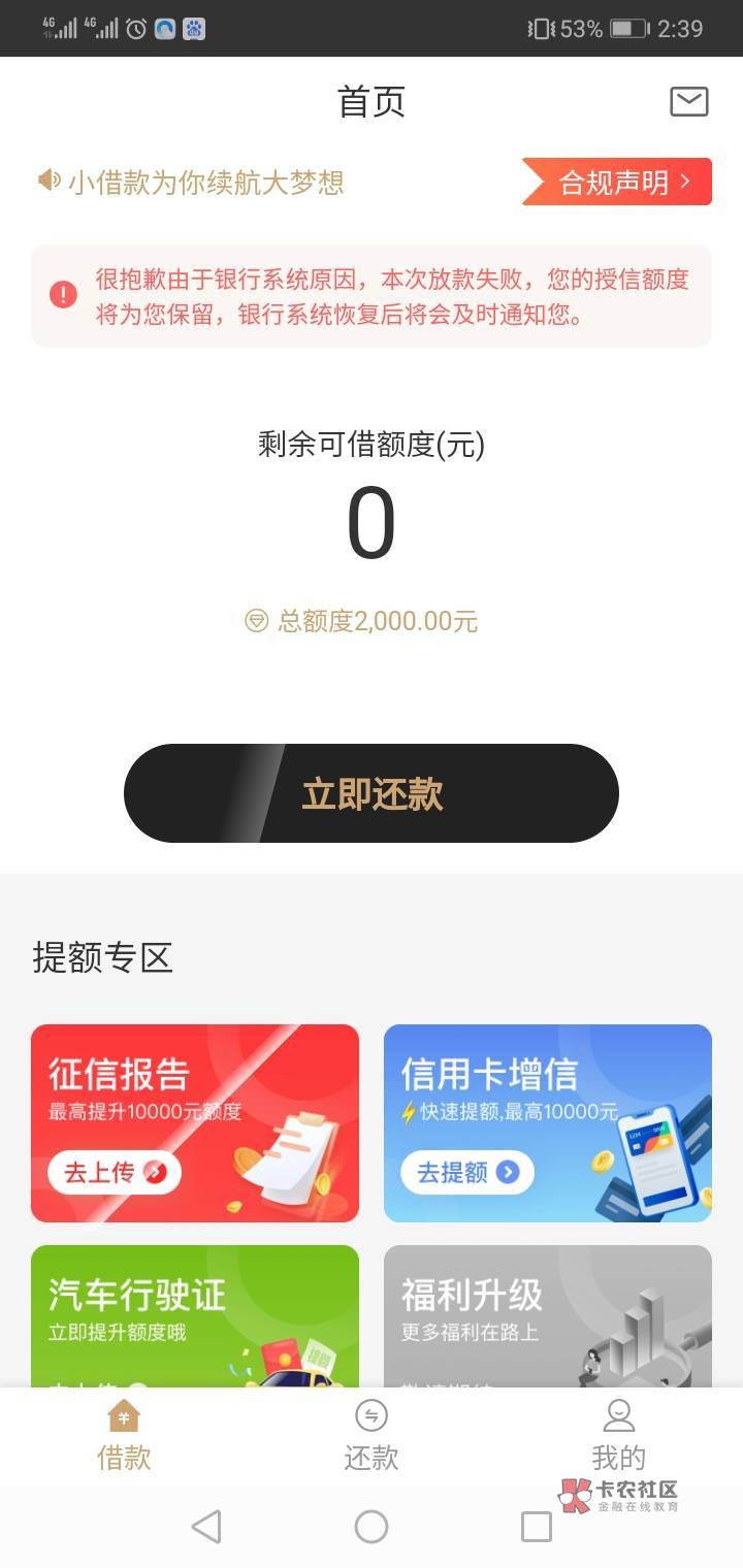 我的也是提前还了,降额了,今天上去额度又回来了,借款已经到账了