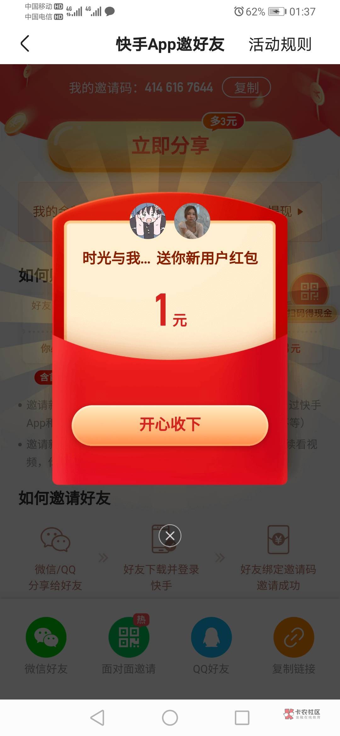 邀请.一个月.前提不同手机不同流量基本过.短期基本没戏